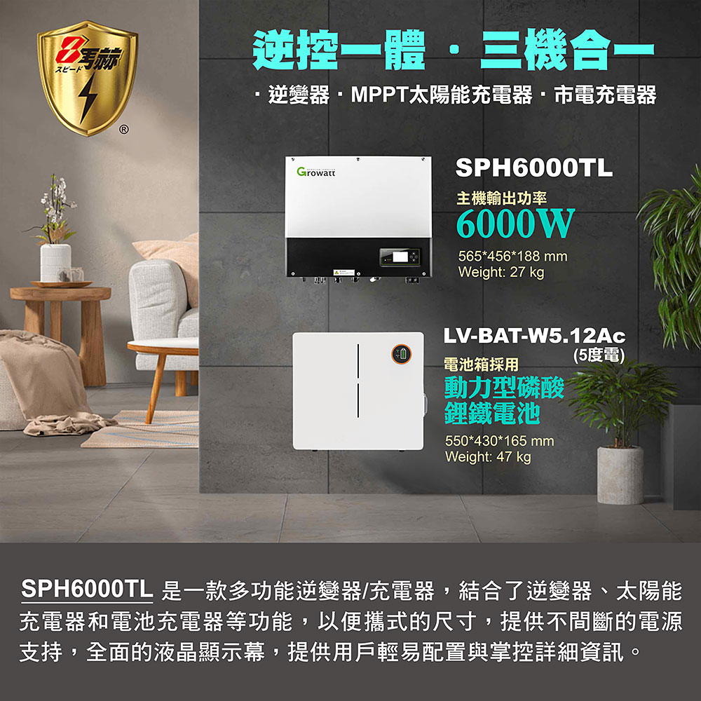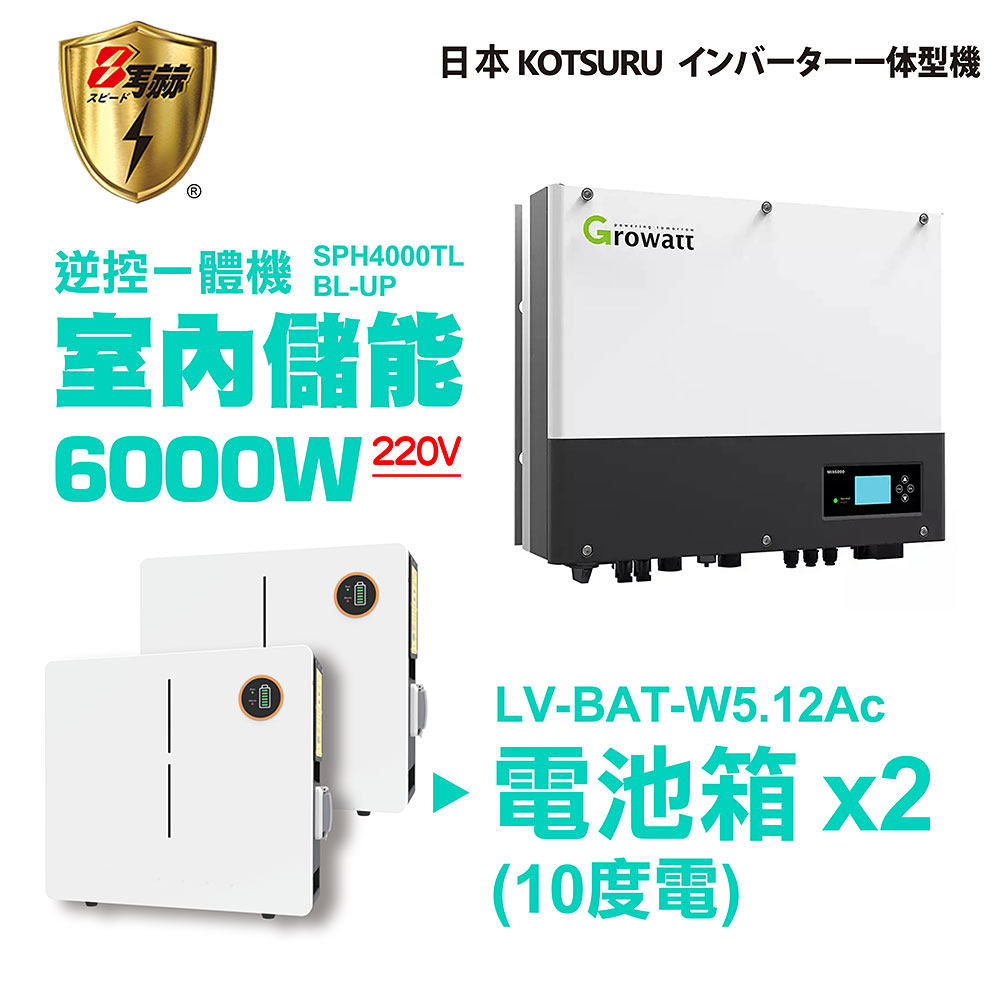 KOTSURU 8馬赫 第三代家用儲能逆變器(6000W) + 電池箱x1(5度電) 容量可擴充 施工另計現場估價