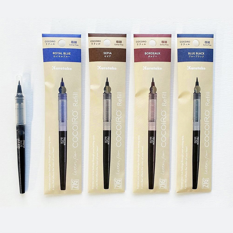 自2010年推出以來廣受好評的ZIG Letter Pen COCOIRO重新上市。根據書寫的力道、速度及筆尖的彈性,可以呈現出不同的線條粗細,能充分展現個人書寫風格。筆身採圓潤的流線型設計,手感舒適。推出筆身8色、替芯5色。LPF-010 黑色LPF-030 藍色LPF-065 茶色LPF-203 酒紅LPF-378 深藍色
