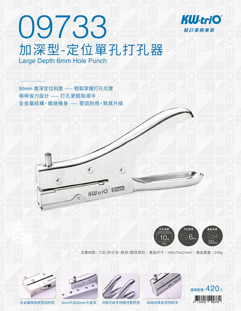 KW-trio 50mm 加深型 定位 單孔 打孔器 (單次約10張) /台 09733