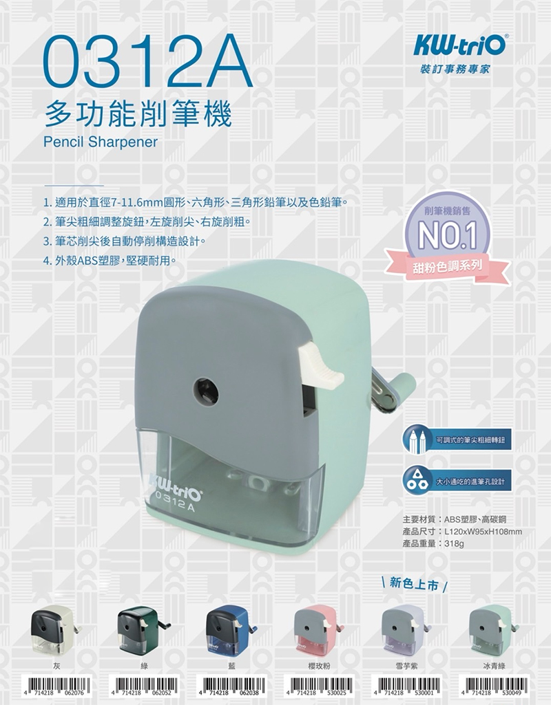 KW-trio 兩用削鉛筆機 大小通吃7-11.6mm (顏色隨機出貨) /台 KW 312A(0312A)