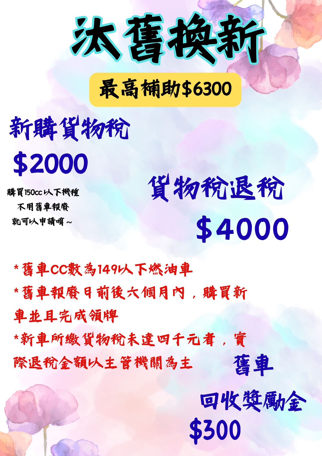 *售價不含領牌規費及強制險費用*新車屬於個財產登記,經領牌後不可退換貨!!