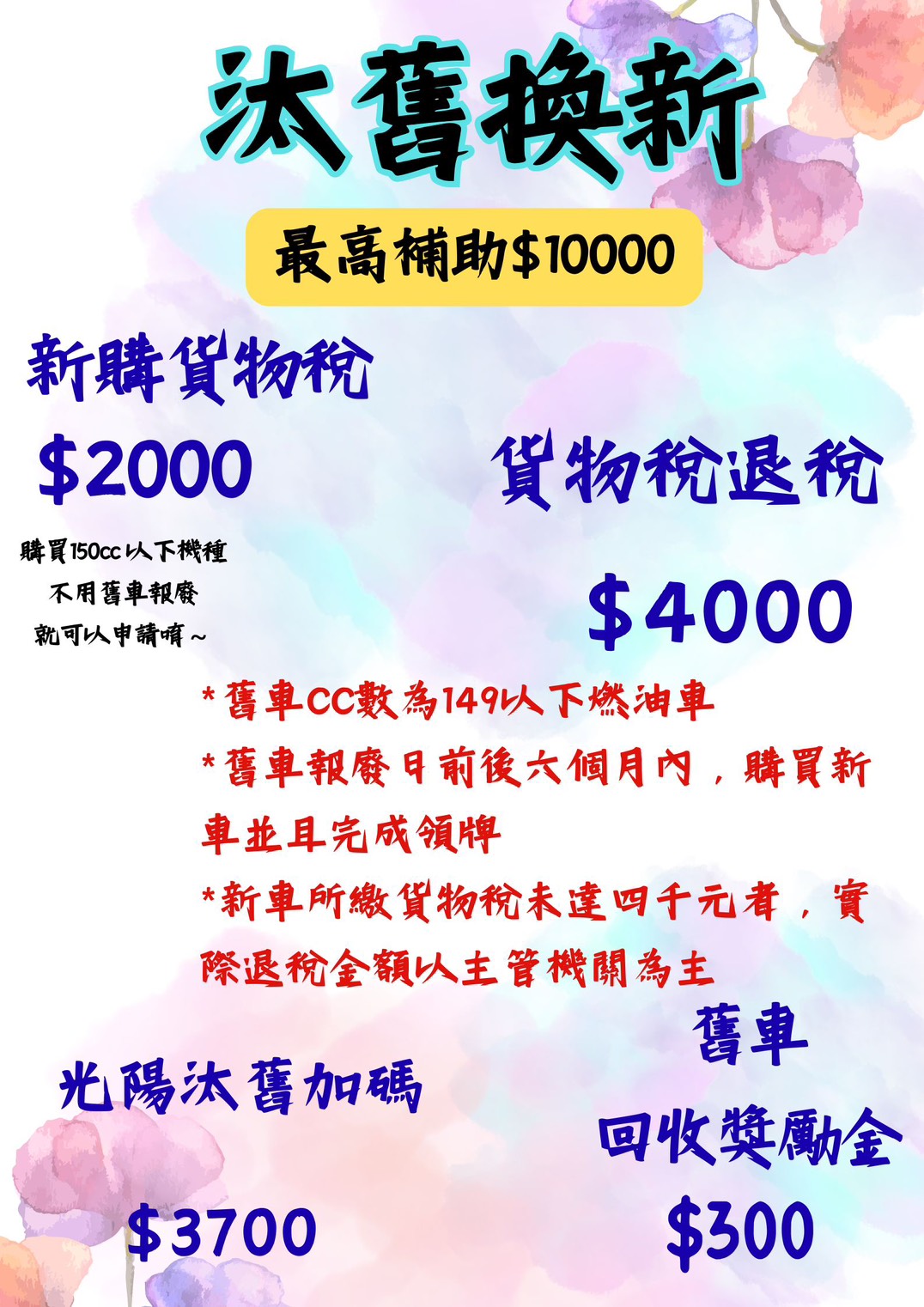 *售價不含領牌規費及強制險費用*新車屬於個財產登記,經領牌後不可退換貨!!