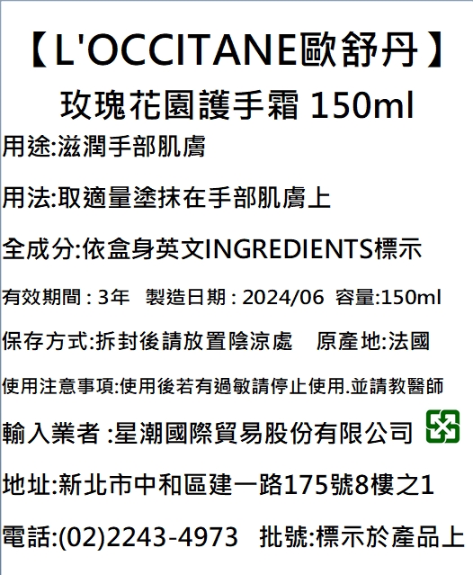 ◎Brand:L'OCCITANE 歐舒丹 ◎Specifications: 150ml毫升 x 1 x 1PC支