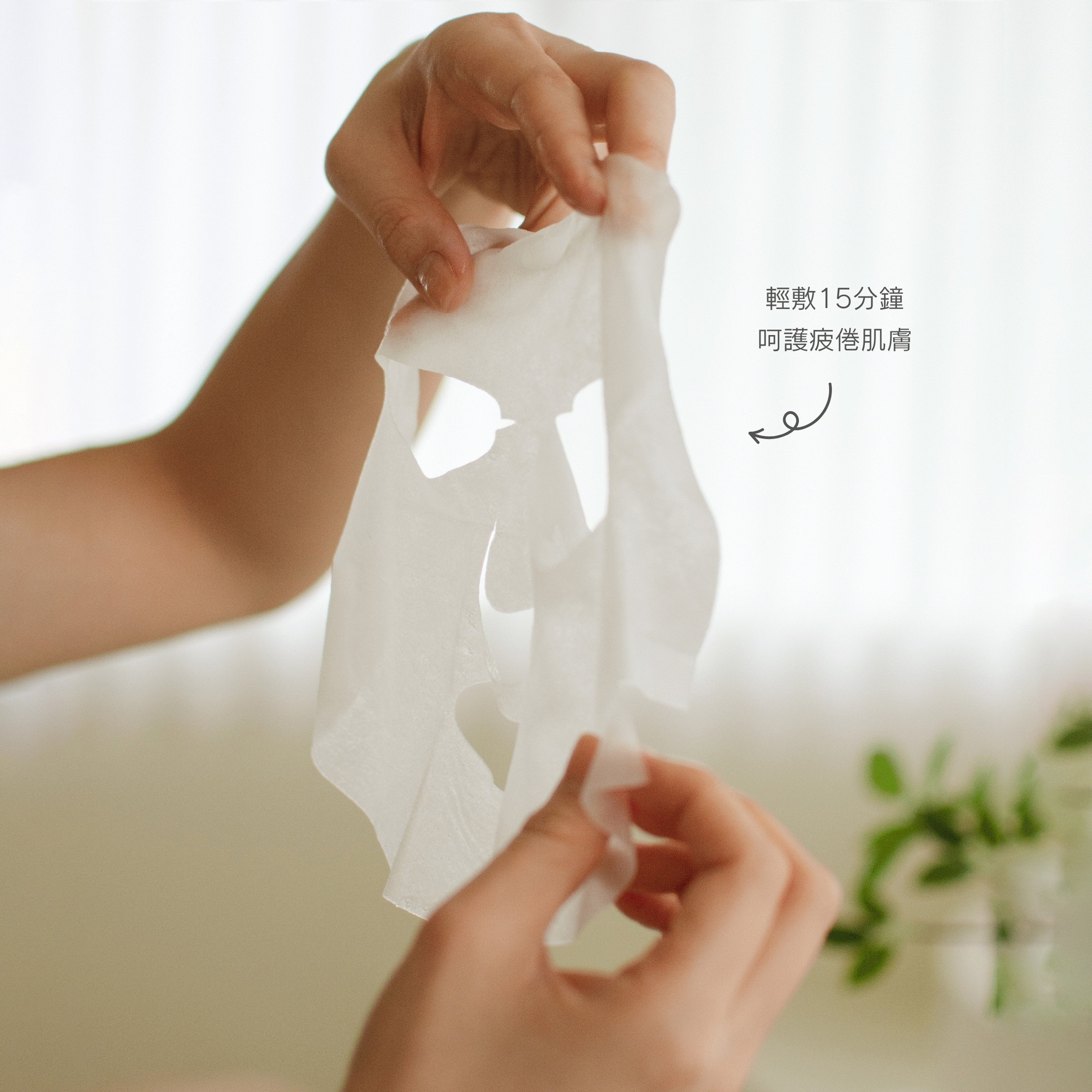 面膜布貼合膚質,精華充盈,清爽不黏膩。