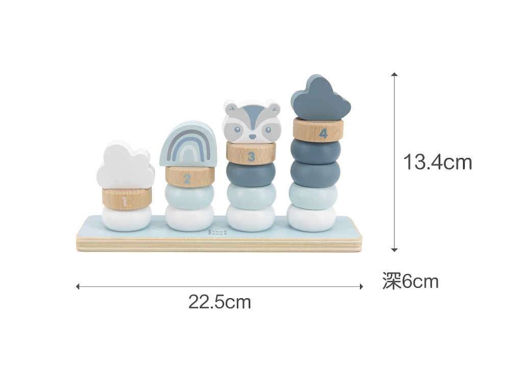 尺寸:22.5x6x13.4cm重量:330g材質:山毛櫸木、合板、中密度纖維板(MDF)產地:中國●繽紛可愛的套環,上面好像有什麼動物躲起來了?是一隻調皮的兔子!●10 個彩色套環、4 個編號套環、還有4 個可愛造型的積木●將不同顏色套環堆疊一列列,訓練平衡●更進一階,依照圓環積木上的數字堆疊,訓練孩子數數●採用FSC™認證木質製成,外觀顏色使用兒童友善的水性顏料●學習主題:眼部協調/手部小肌肉/形狀/數數/堆疊/邏輯