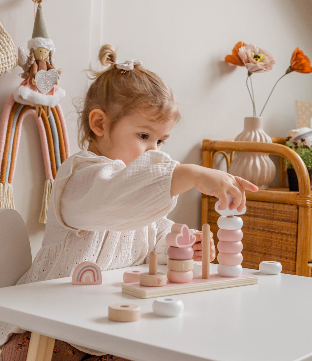 尺寸:22.5x6x13.4cm重量:330g材質:山毛櫸木、合板、中密度纖維板(MDF)產地:中國●繽紛可愛的套環,上面好像有什麼動物躲起來了?是一隻調皮的兔子!●10 個彩色套環、4 個編號套環、還有4 個可愛造型的積木●將不同顏色套環堆疊一列列,訓練平衡●更進一階,依照圓環積木上的數字堆疊,訓練孩子數數●採用FSC™認證木質製成,外觀顏色使用兒童友善的水性顏料●學習主題:眼部協調/手部小肌肉/形狀/數數/堆疊/邏輯