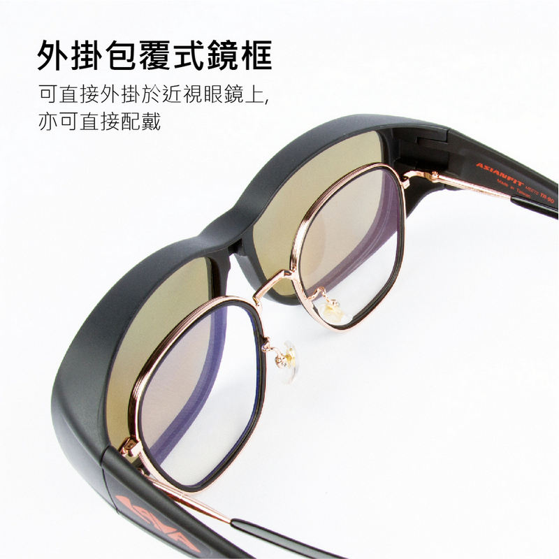 超彈性TR90鏡框100%防紫外線可外掛在眼鏡上,也可搭配度數鏡片可拆式鼻墊腳尾有軟墊,配戴舒適