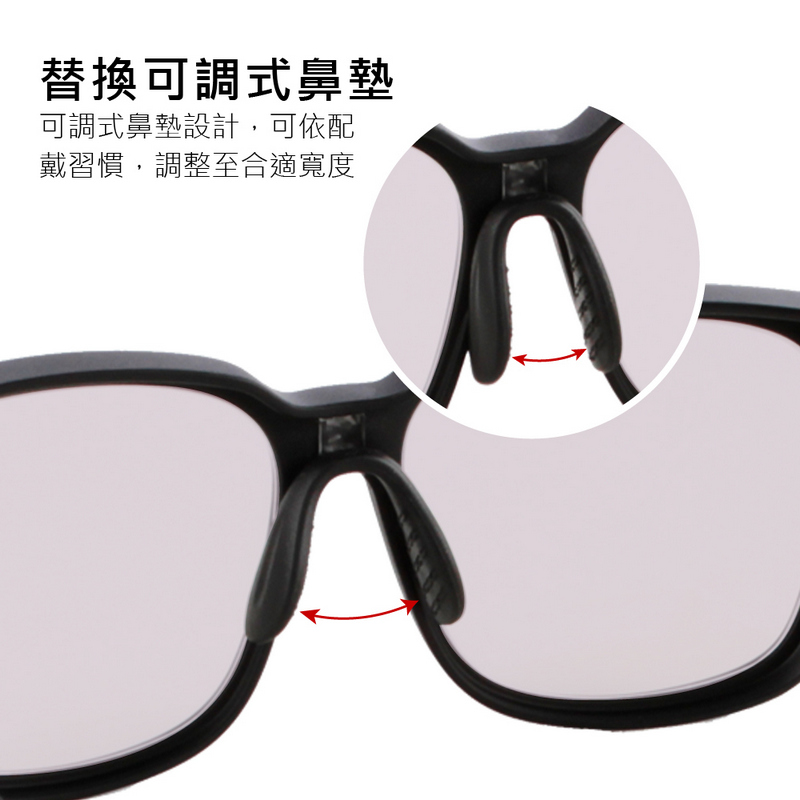 超彈性TR90鏡框100%防紫外線可外掛在眼鏡上,也可搭配度數鏡片可拆式鼻墊腳尾有軟墊,配戴舒適