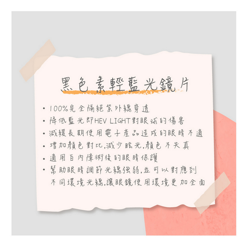 TR90超彈性記憶鏡框無螺絲結構設計PC強化鏡片防刮耐撞擊100%抗UV