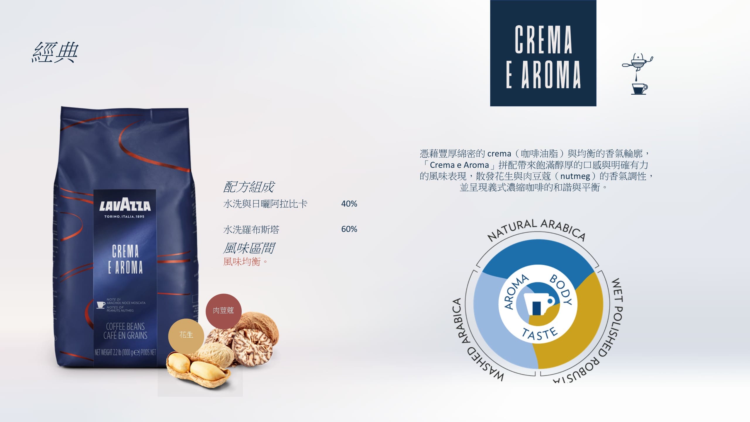 香氣厚實奔放,入口即展現義式咖啡該有的濃烈與滿足感。