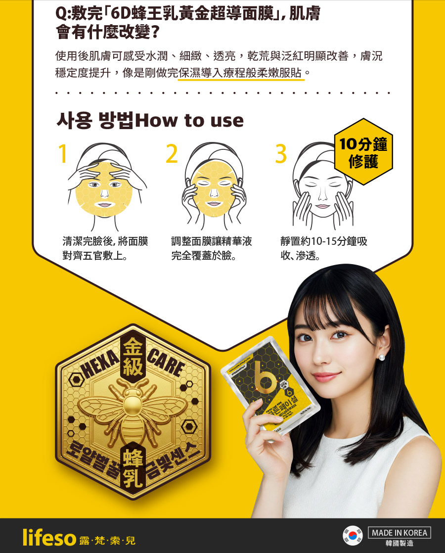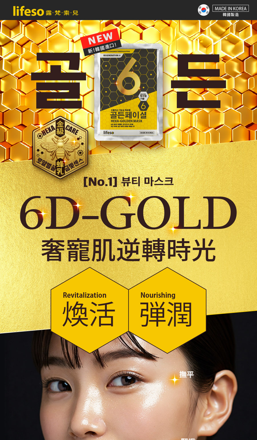 lifeso | 6D蜂王乳黃金超導面膜 (12入組)