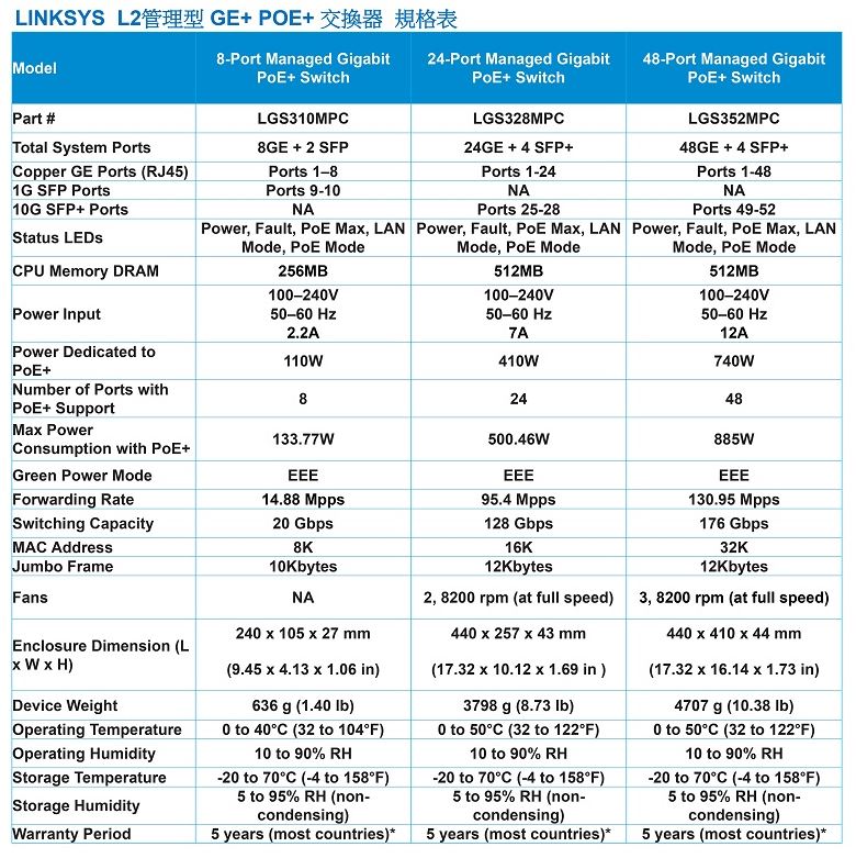 昌運監視器 Linksys LGS310MPC-TW 8埠 POE L2管理型 Gigabit 超高速乙太網路交換器