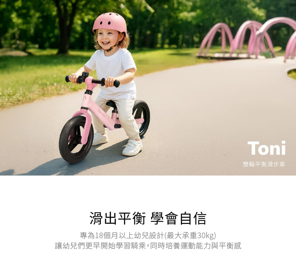 超輕量設計僅2.3kg,讓幼兒輕鬆操控、爸媽外出方便攜帶。車把與座椅皆可依身高調整,陪伴幼兒一路成長。高品質PU耐磨免充氣輪胎,車輪內部搭載高規格ABEC-7培林軸承,能有效降低阻力,提升滑行流暢度,搭載120°限轉設計加強騎乘安全。滑步車能有效培養平衡感、協調力與肌肉發展,是學習騎乘腳踏車前的重要階段。