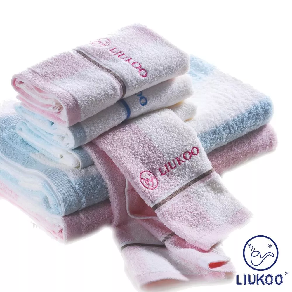 【LIUKOO 煙斗】純棉32支紗大粉彩條浴巾LK972