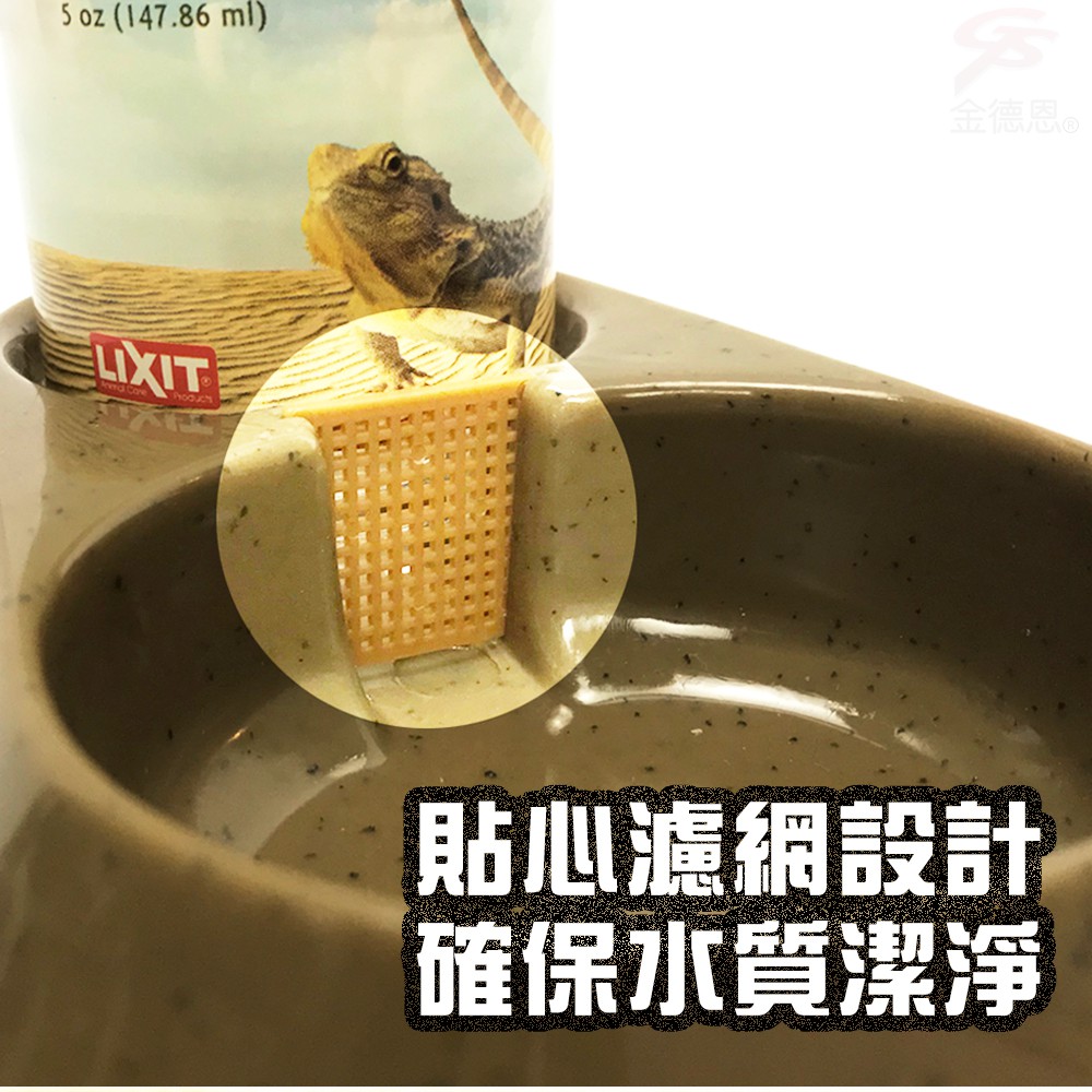●適用爬蟲類型的寵物使用●維持水源潔淨保護寵物健康●寬穩底座防止傾倒●瓶身底座可拆卸設計●外出收納提昇效益GS00245【商品規格】顏色:隨機出貨容量:150cc(45oz)(±5%)材質:瓶身-食品級K膠,底座-食品級PP重量:73g(±5%)產品尺寸:底座:18x12x3cm(±5%)瓶身:10x直徑4.2cm(±5%)包裝方式:袋子封裝包裝尺寸:18x18x18cm(±5%)產地:台灣【使用方法】※ 將瓶子注水鎖緊水盤後轉成正向置於平面即可。※ 請定期清洗以保寵物清潔健康。【注意事項】※ 為確保商品完整度,經拆封後,不提供退換貨服務※ 情境商品不在販售項目中※ 商品退換貨,請勿在原包裝上張貼或寫字※ 僅限新品瑕疵退換貨(猶豫期並非試用期)※ 電腦螢幕會產生色差,顏色以實際產品為主※ 退換貨,請妥善保存購買憑證、發票等證明文件※ 商品退換貨,請保持原樣貌及外包裝,如有缺件或包裝不完整之情形,則可能產生整新之費用#爬蟲飲水器 #飲水器 #寵物飲水器 #兩棲爬蟲飲水器 #LIXIT