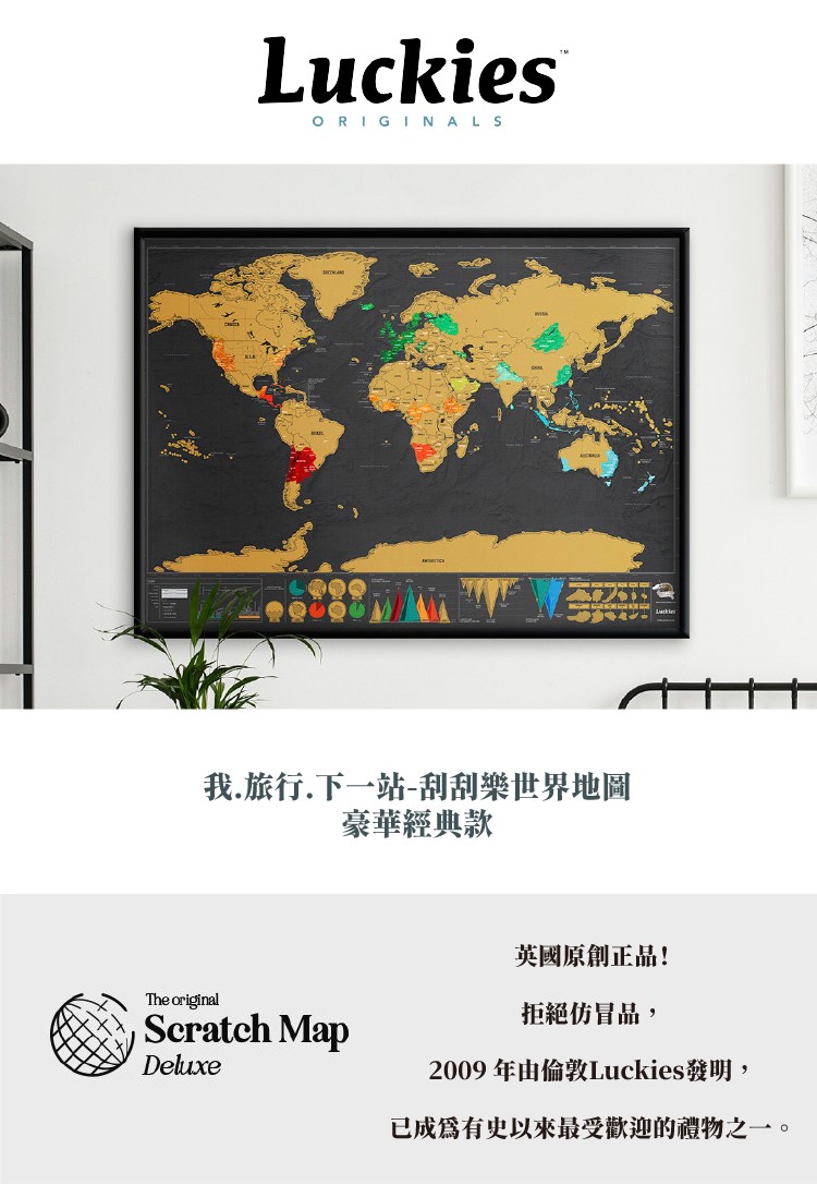 送禮的頂級選擇源自 2009 年英國 Luckies of London 原創專利,數百萬次的銷售見證它的經典。每一幅皆附高質感收納筒包裝,成為送給環遊世界夢想家的完美禮物。