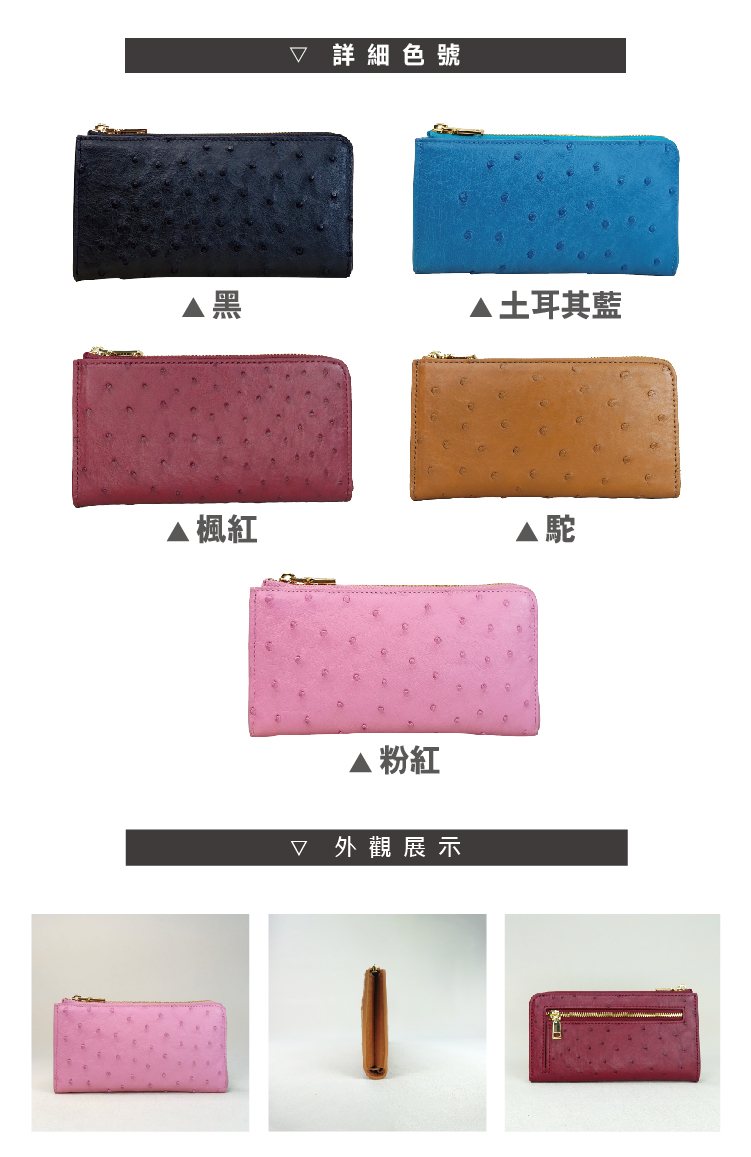 材質:進口鴕鳥皮+五金扣環尺寸:17*9*1.5 cm配件:保固卡*1※備註:預購商品,請以系統出貨日為主※其他:一年保固,新品瑕疵※鴕鳥皮屬於天然珍稀皮革,每一只包都有獨特的天然動物紋路※商品照片僅供參考 請以實品為主※尺寸是未裝物測量依主觀及使用略有不同,請以實物為主