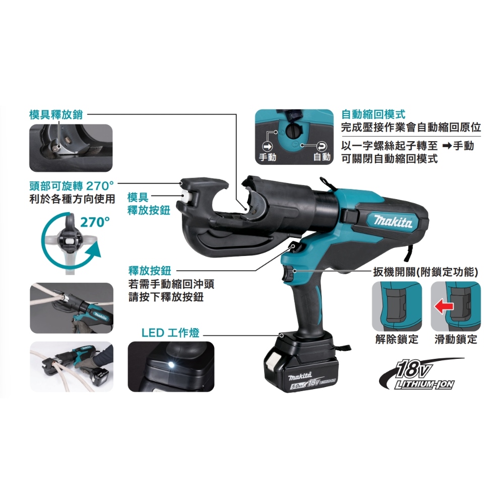 MAKITA牧田 DTC302ZK 18V電纜壓接機 單主機 無電池 無充電器※圖片中電池僅供參考