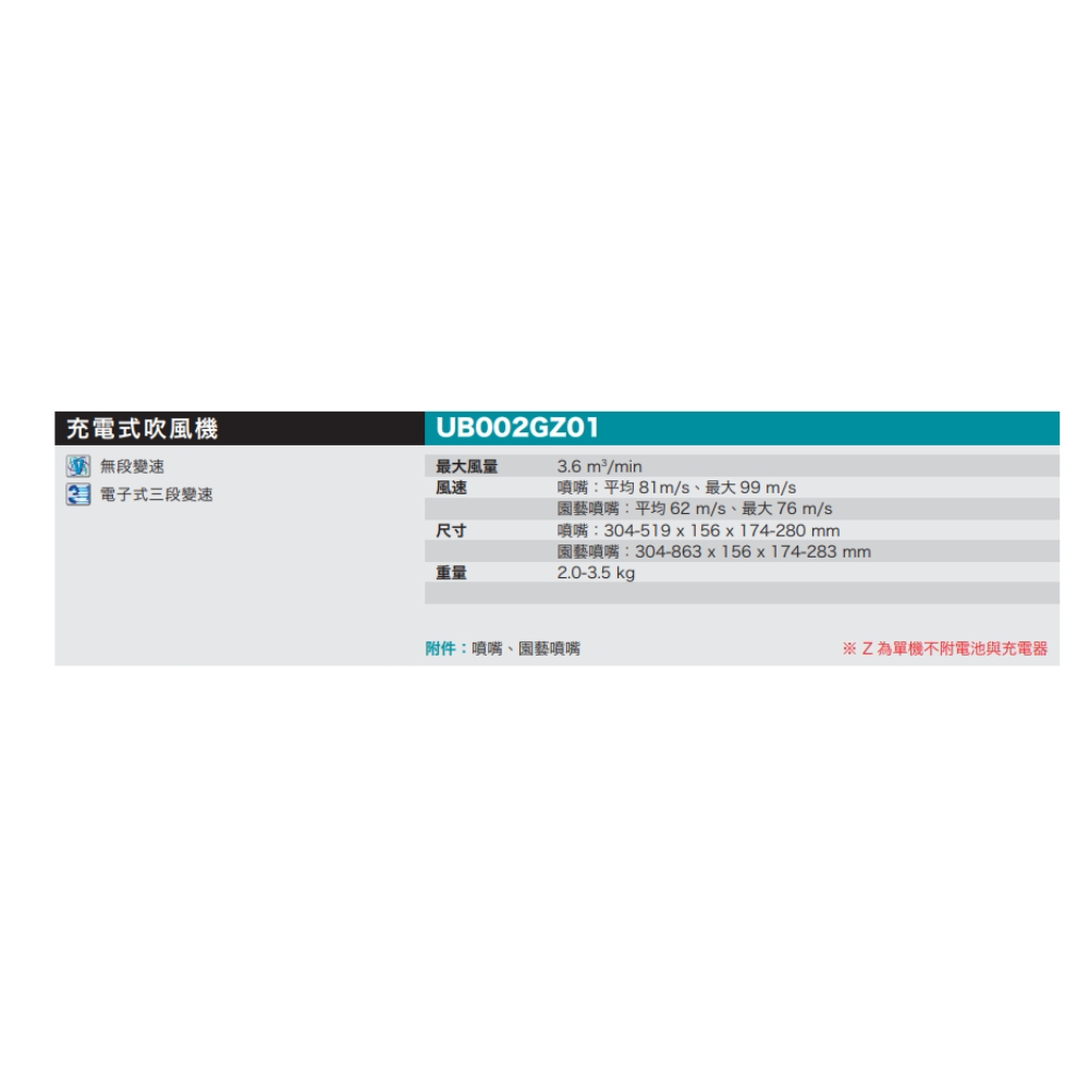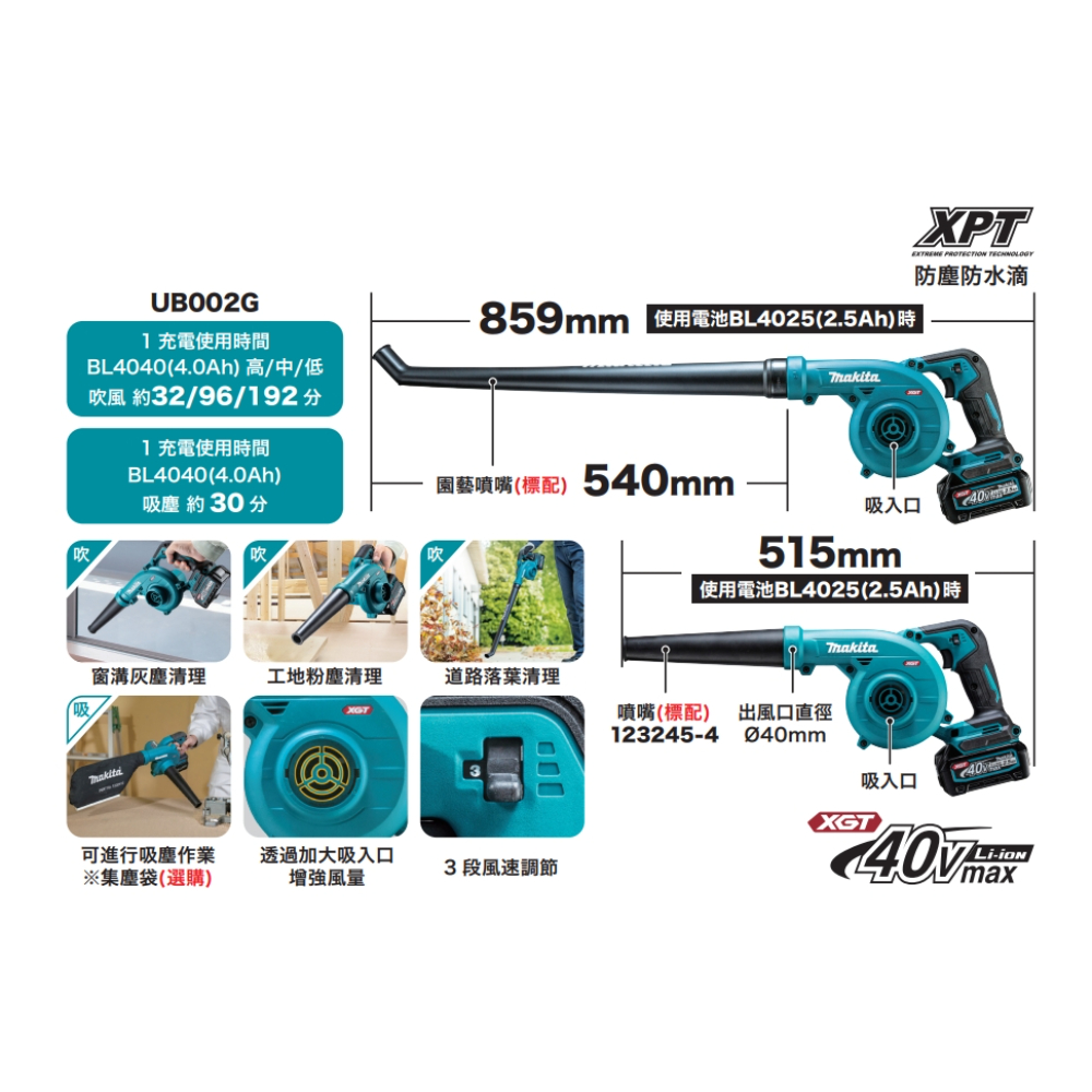 MAKITA牧田 UB002GZ01 40V吹風機 單主機 無電池 無充電器※此賣場為單主機 無電池 無充電器附件:主機*1、噴嘴*1、園藝噴嘴*1