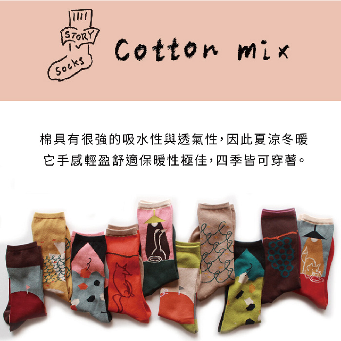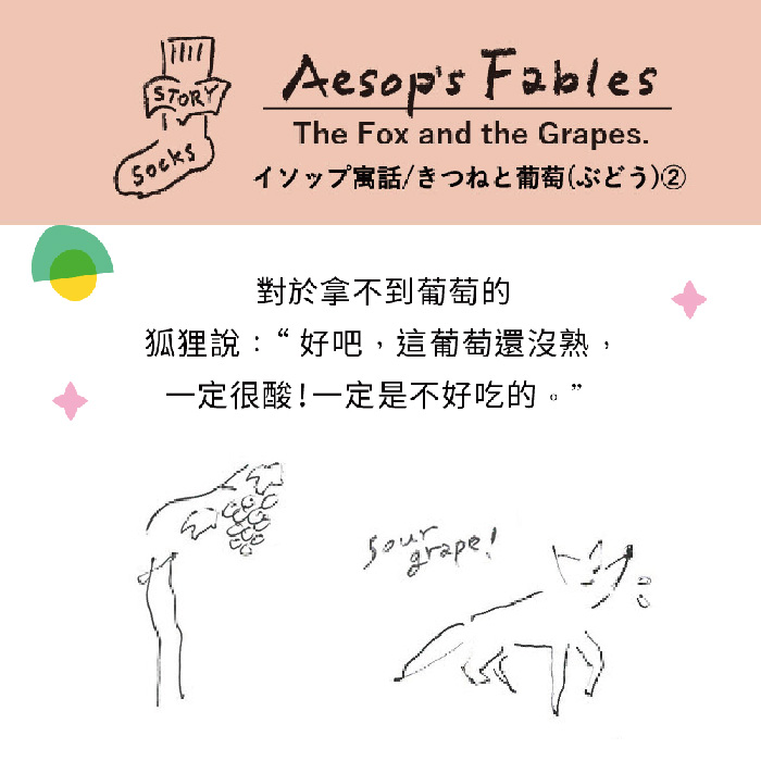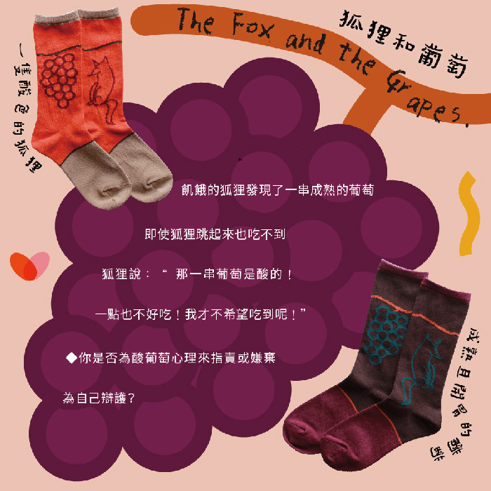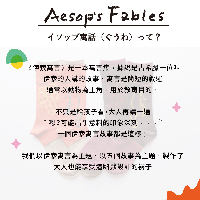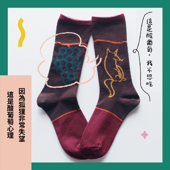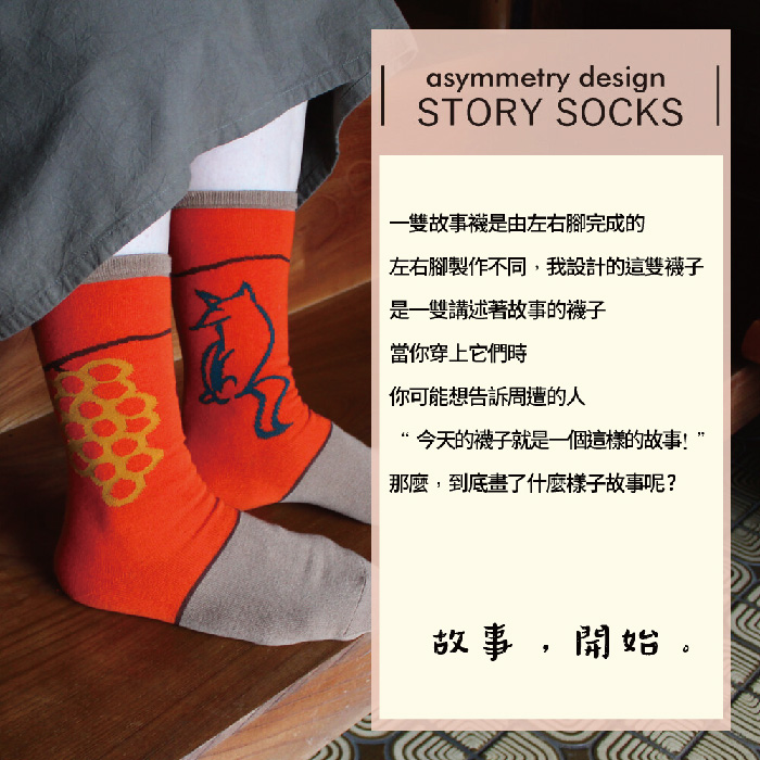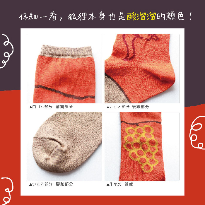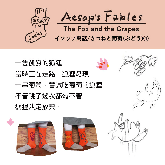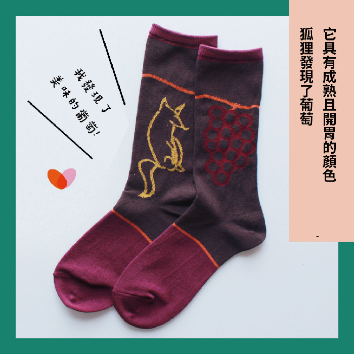 【M&M 日本製】ST05 不對稱故事襪 【伊索寓言】狐狸與葡萄-1雙/組-2組