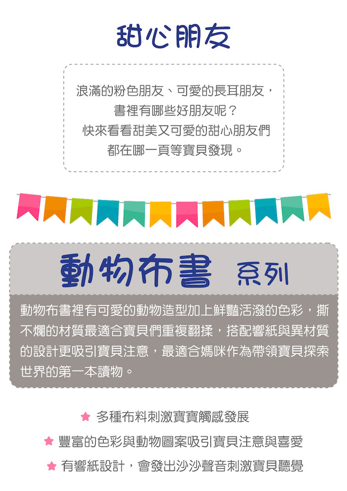 ●不同於淘氣的哥哥,甜心喜歡投入閱讀的世界,在書中一切都那麼不同又閃閃發亮,自己就是每本書中的主角,體驗著各式各樣的美好事物。●甜美又時髦的甜心狐狸,帶著溫柔與耐心陪伴孩子成長。●寶貝最愛打結的角落。●浪滿的粉色朋友、可愛的長耳朋友,書裡有哪些好朋友呢?快來看看甜美又可愛的甜心朋友們都在哪一頁等寶貝發現。商檢字號 M38876