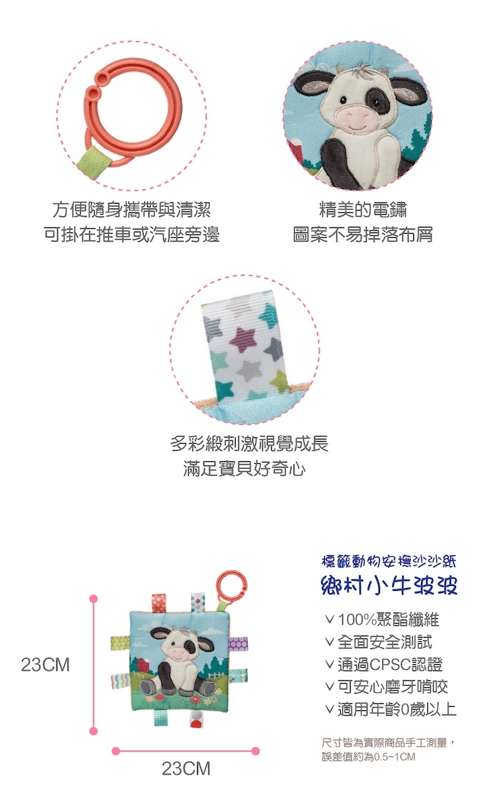 【MaryMeyer】標籤動物安撫沙沙紙-鄉村小牛波波