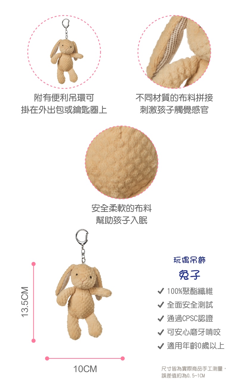 高貴又甜美的小兔兔,搭配柔軟布料和精緻的刺繡,陪伴讓寶寶臉上綻放笑容