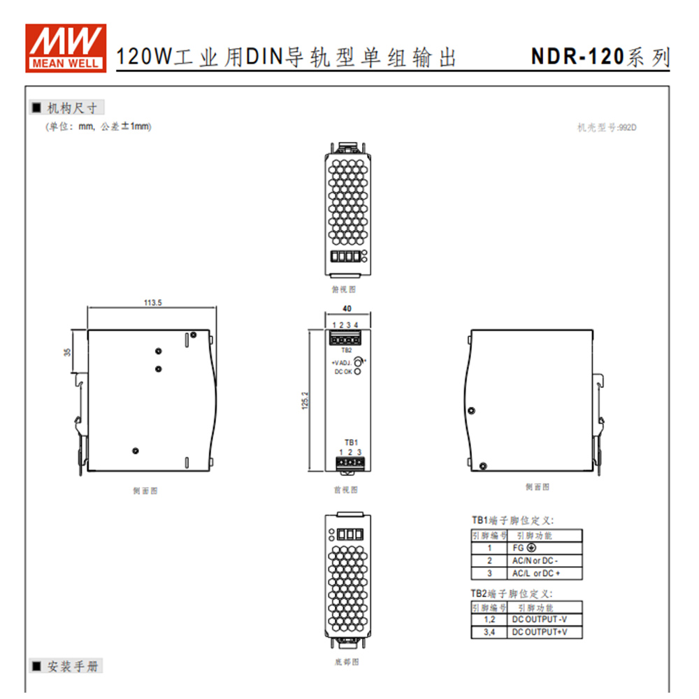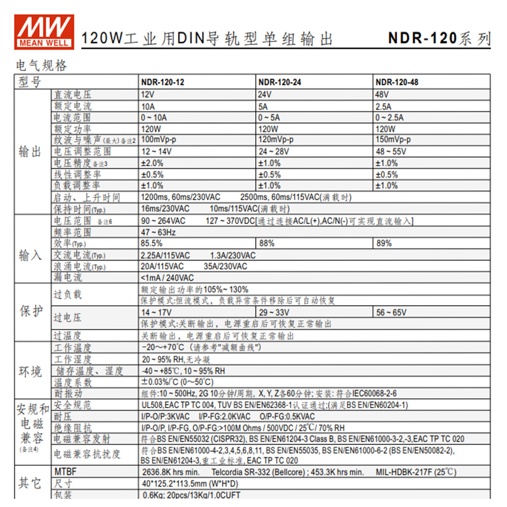 昌運監視器 MEAN WELL 明緯 NDR-120-48 120W工業用DIN導軌式電源