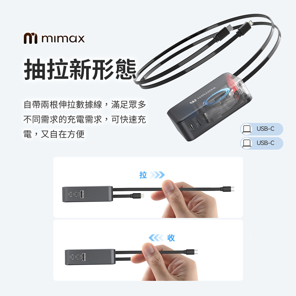 1)內置1150±50mm可伸縮充電線 磁吸收納