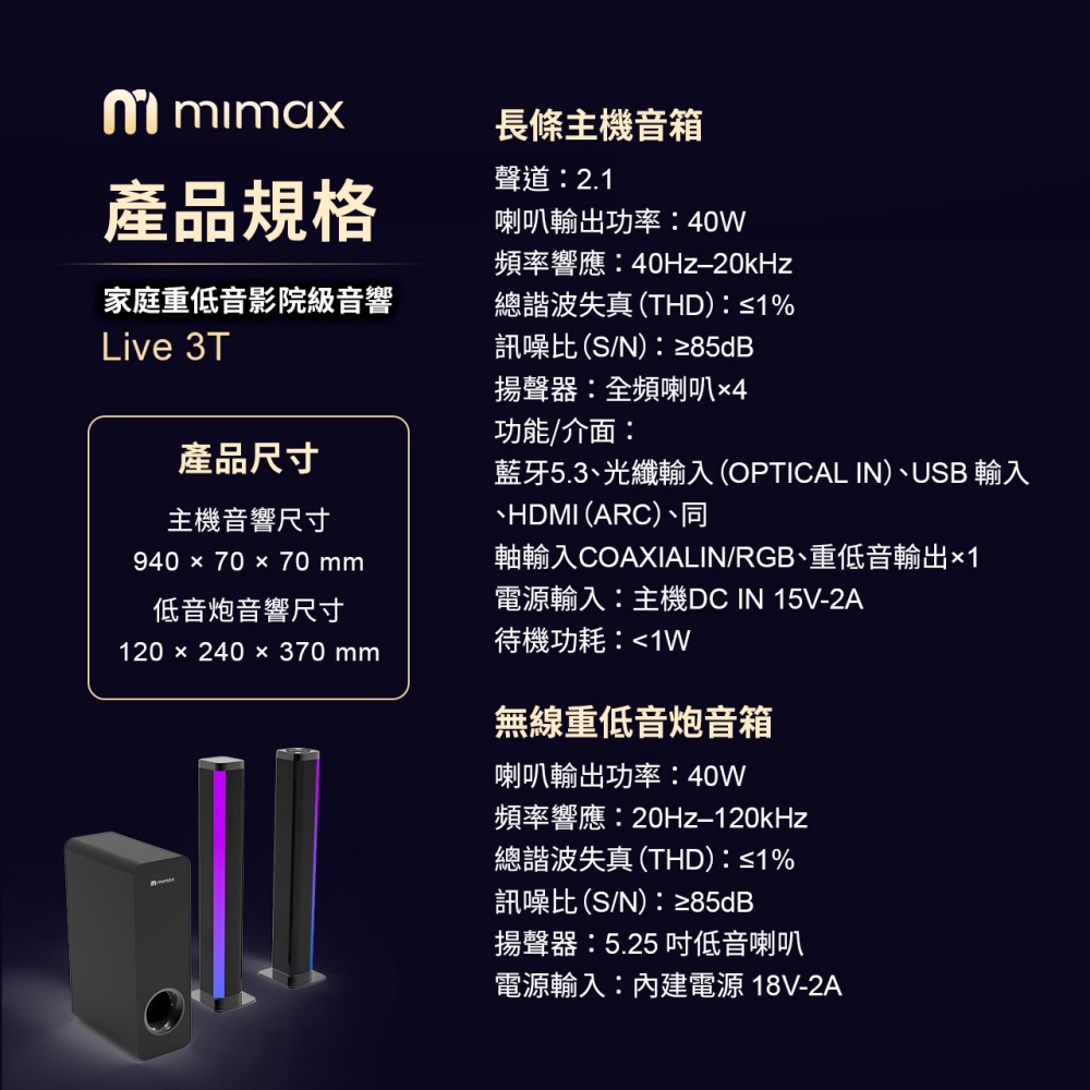 🔹支援藍芽/ARC/同軸/光纖/USB隨身碟等多種模式