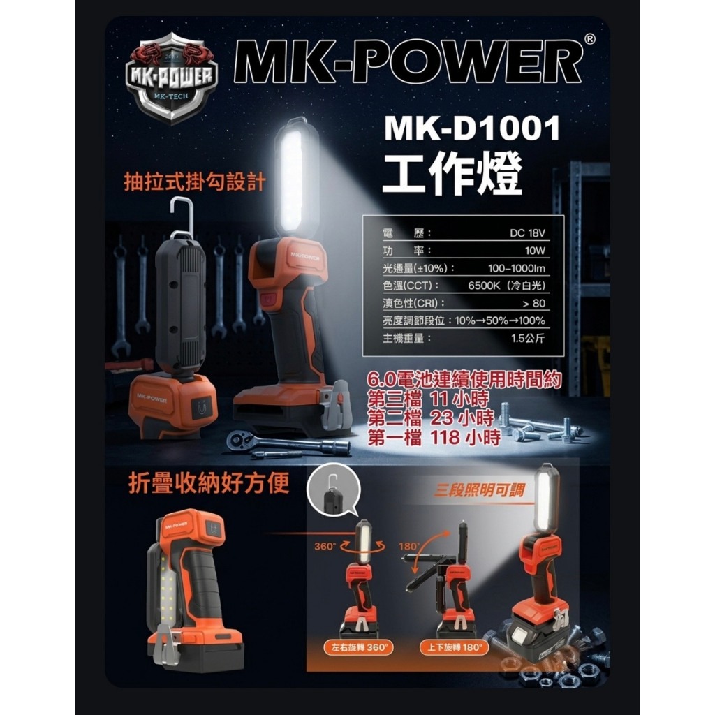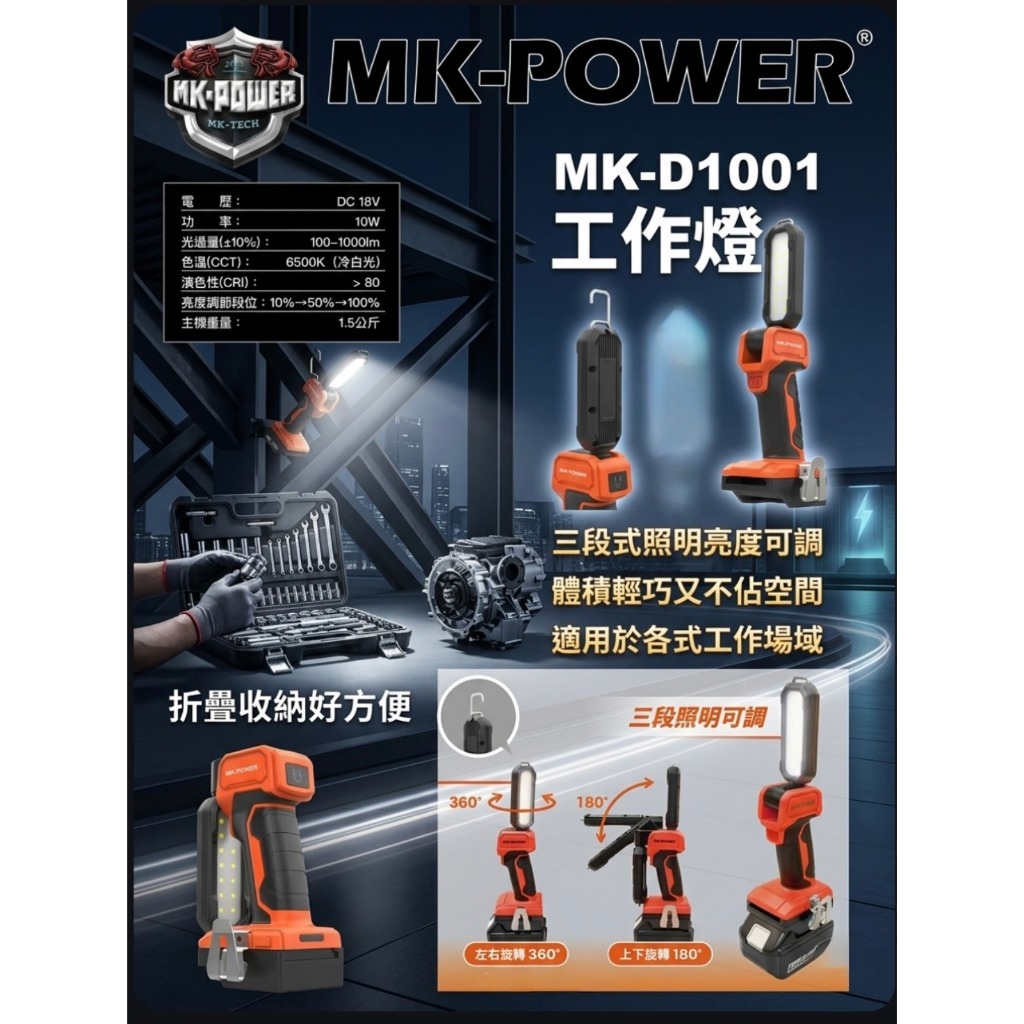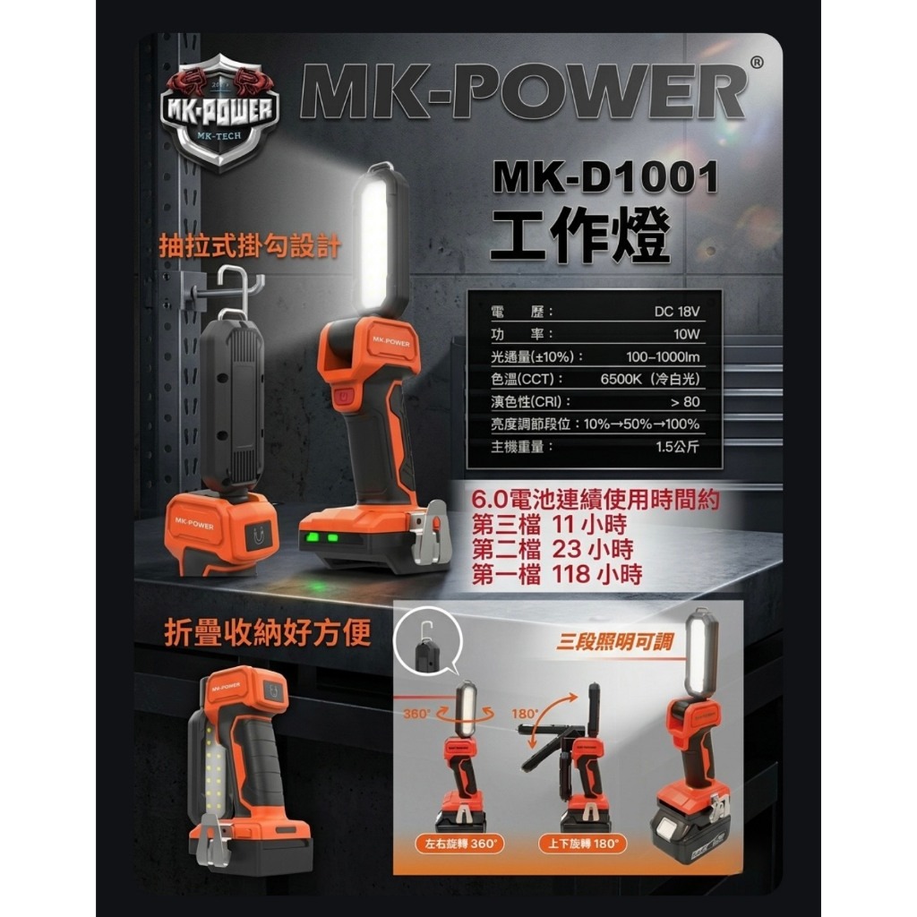 MK-POWER MK-D1001 工作燈|高亮照明・摺疊收納・多角度調整