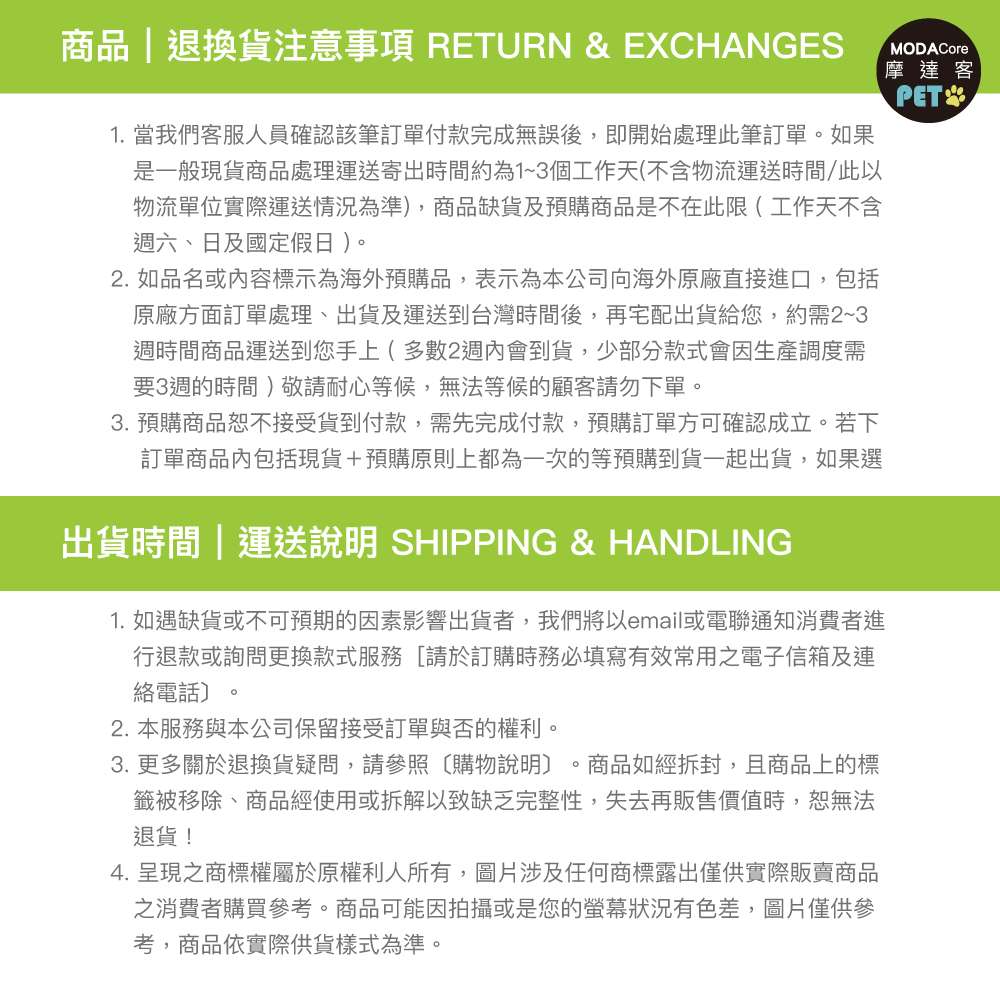 【退/換貨&售後服務】