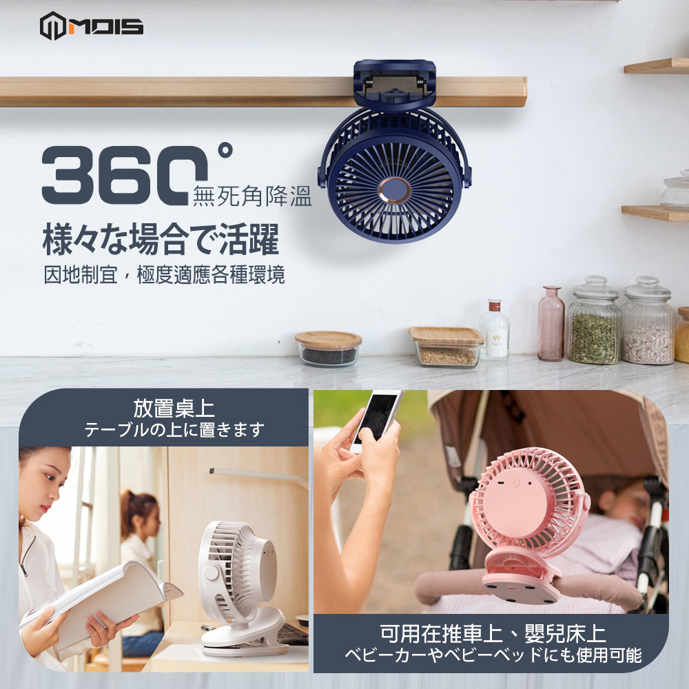 【MOIS】Multipurpose Charging Fan/Clip Fan-Black