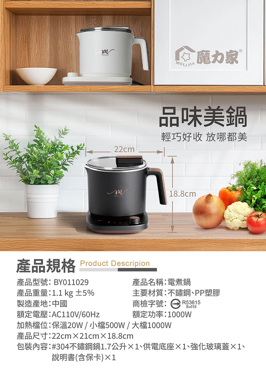 產品名稱:【MOLIJIA 魔力家】M29 保溫分離式快煮鍋1.7L