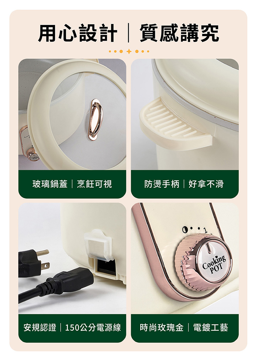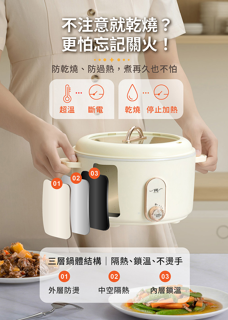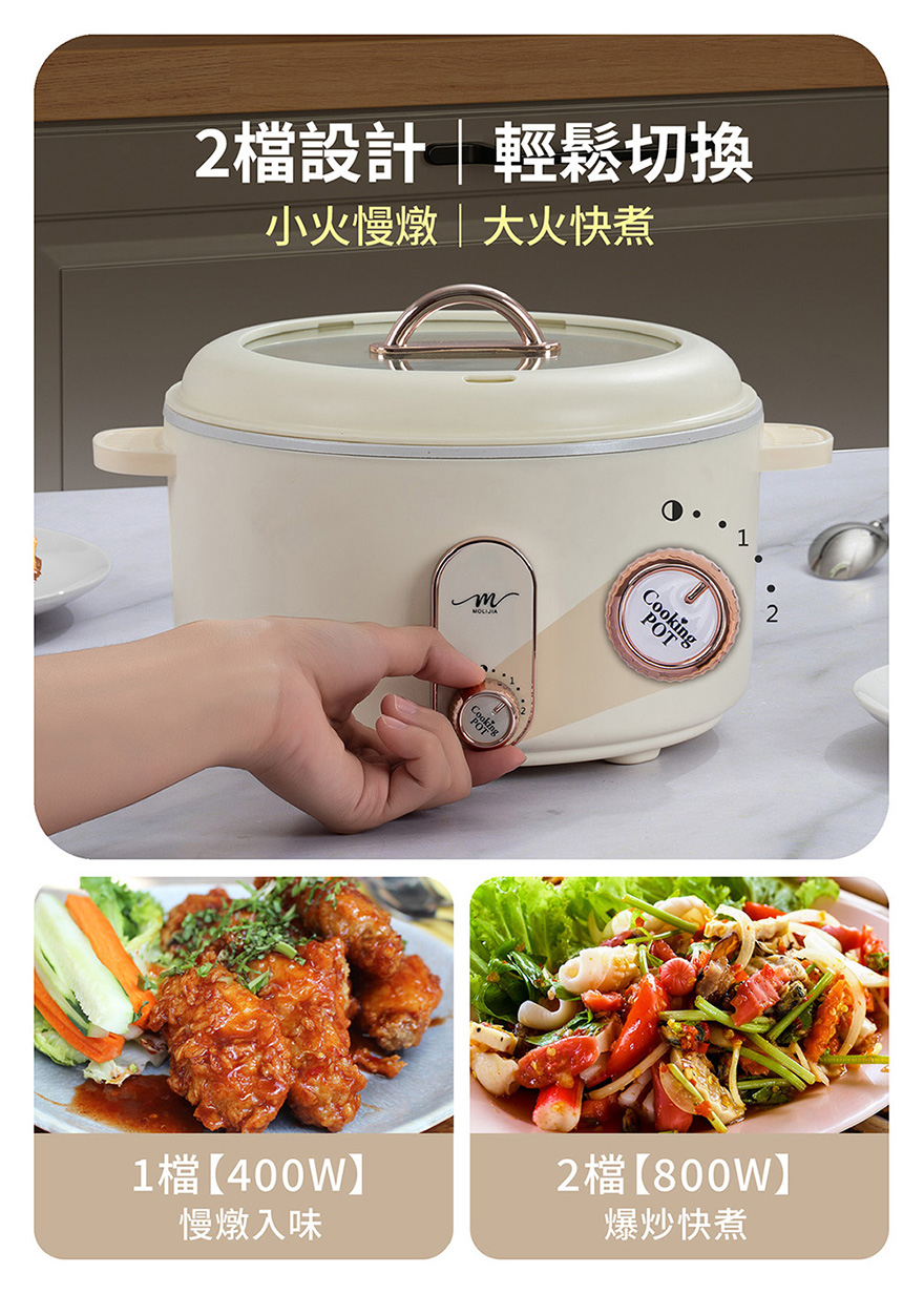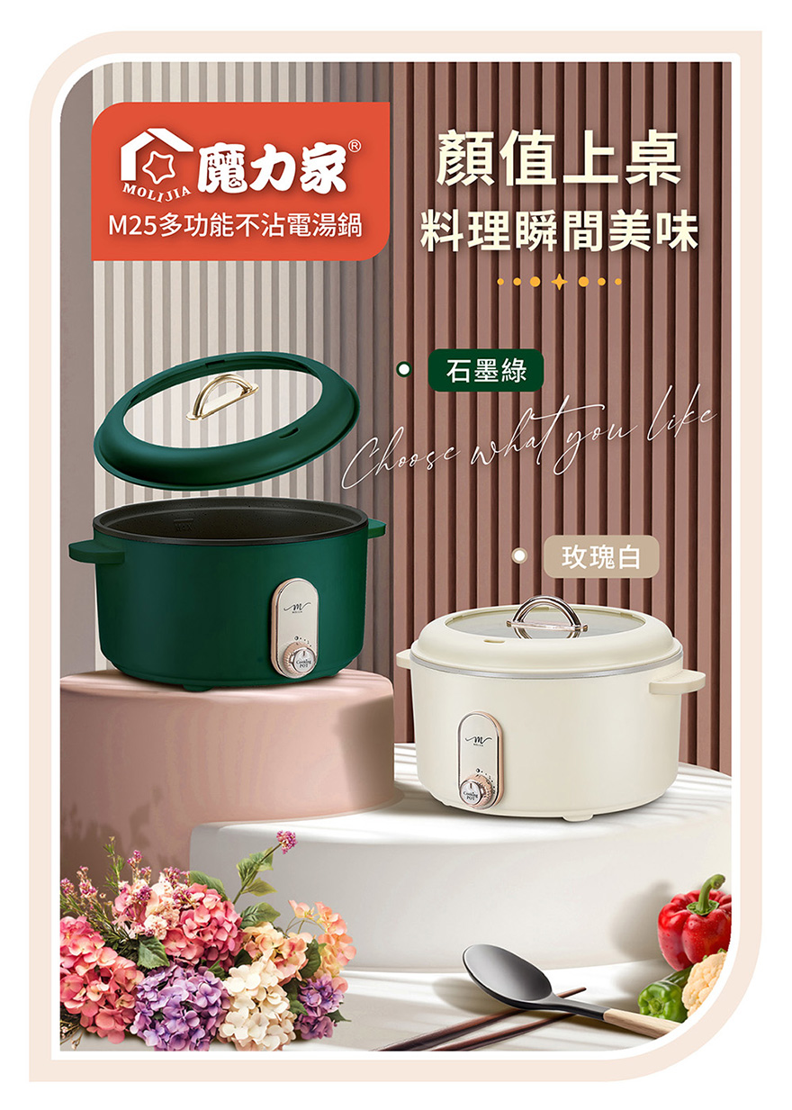 【MOLIJIA】3L-M25 Multifunctional Non-stick Electric Hot Pot/Soup Pot - Rose White