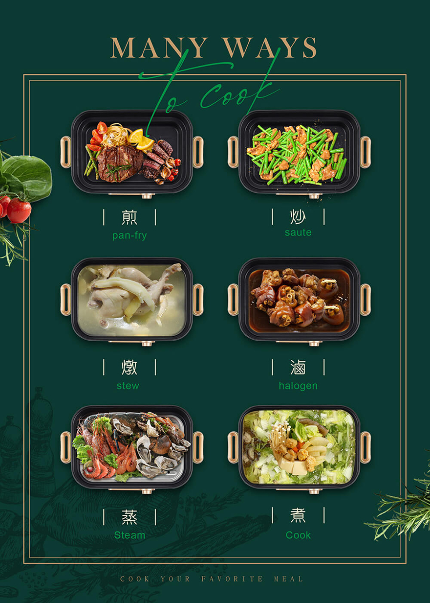 【MOLIJIA】5.3L-M24 Multifunctional Non-stick Electric Cooker with Stainless Steel Steaming Plate - Macaron Green