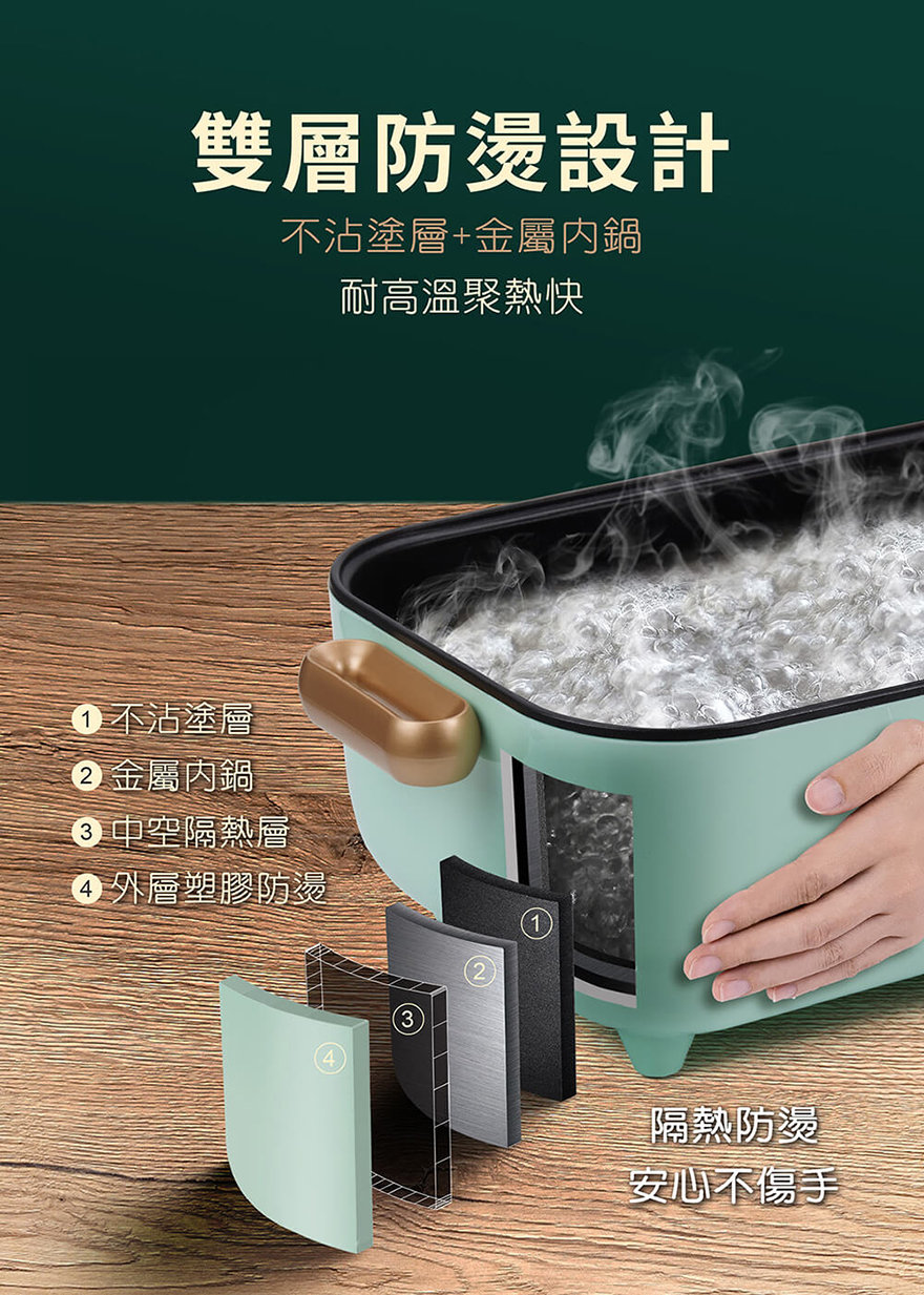 內容物:不沾方鍋x1+強化玻璃蓋x1+分離式電源線x1+不鏽鋼蒸盤x1+說明書x1