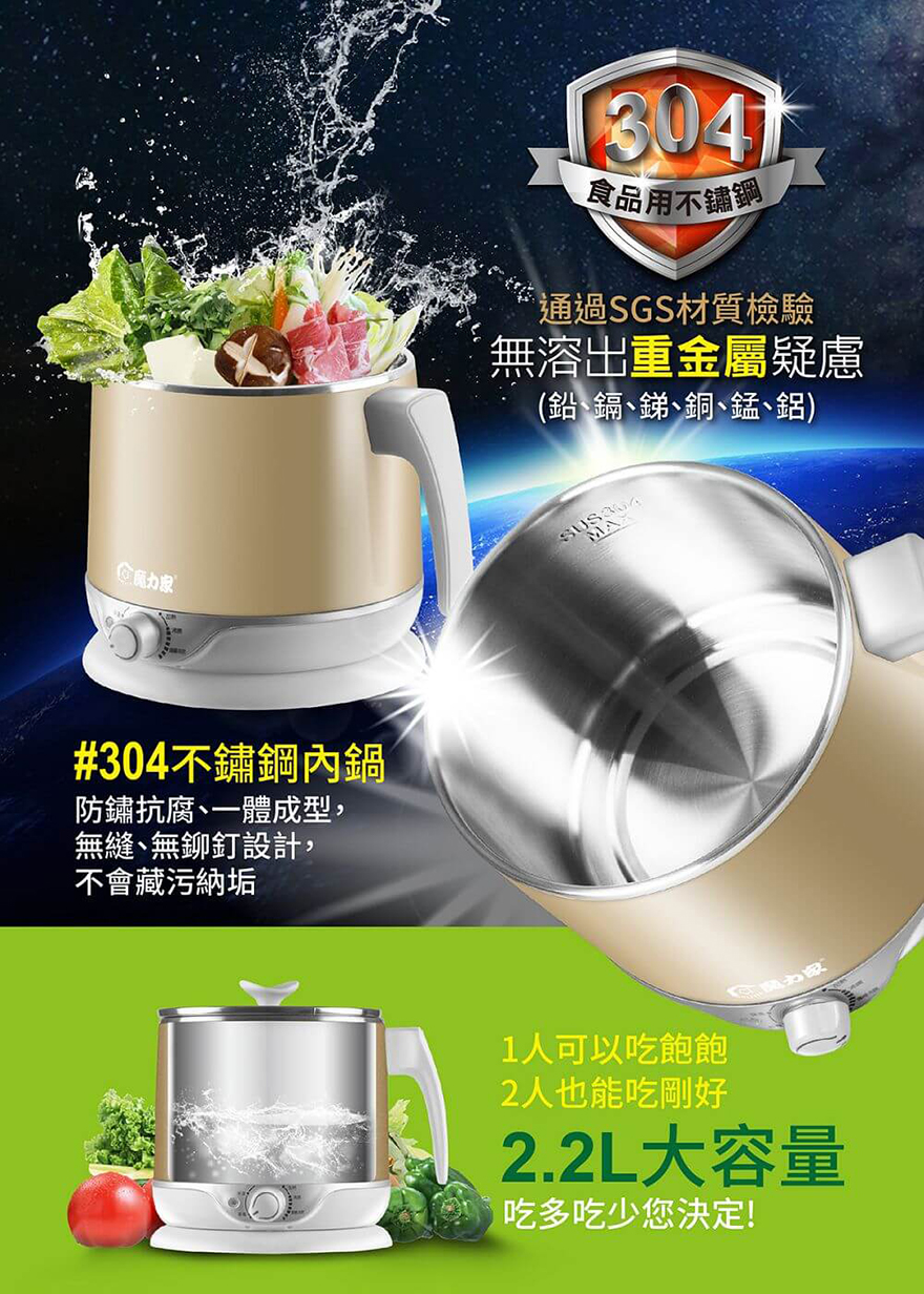 主要材質:#304不鏽鋼(內鍋)、PP塑膠