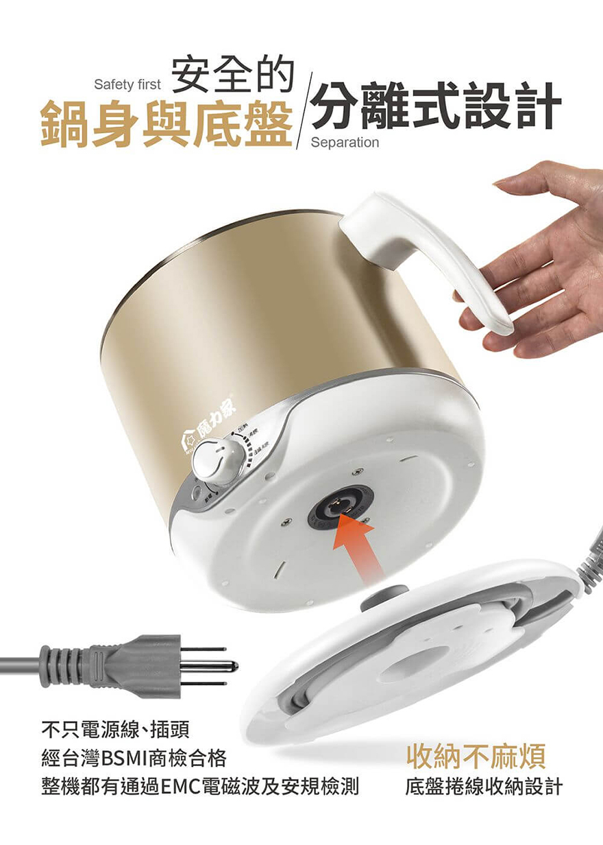 請使用本產品搭配的專用底座,請勿隨意將快煮鍋本體安裝在非本產品專用的底座上使用!