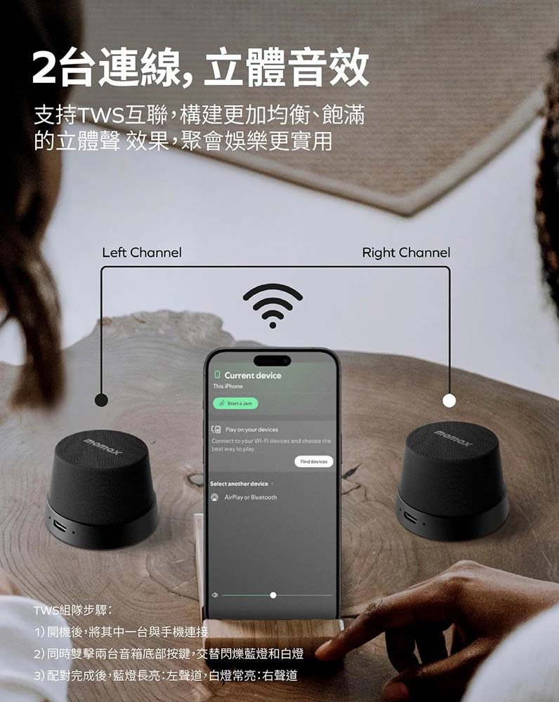 支援雙喇叭無線串聯,沉浸在環繞的立體聲音效中,讓聽覺享受再升級。