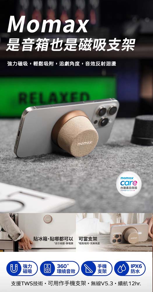 隆重介紹 Momax 1-Vibe Go 磁吸無線音箱。
