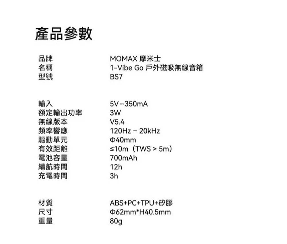 [Shanshuizhibao]Momax 1-Vibe Go Magnetic External Speaker IK07 Shock-resistant, IPX6 Waterproof Magsafe Original Factory Product