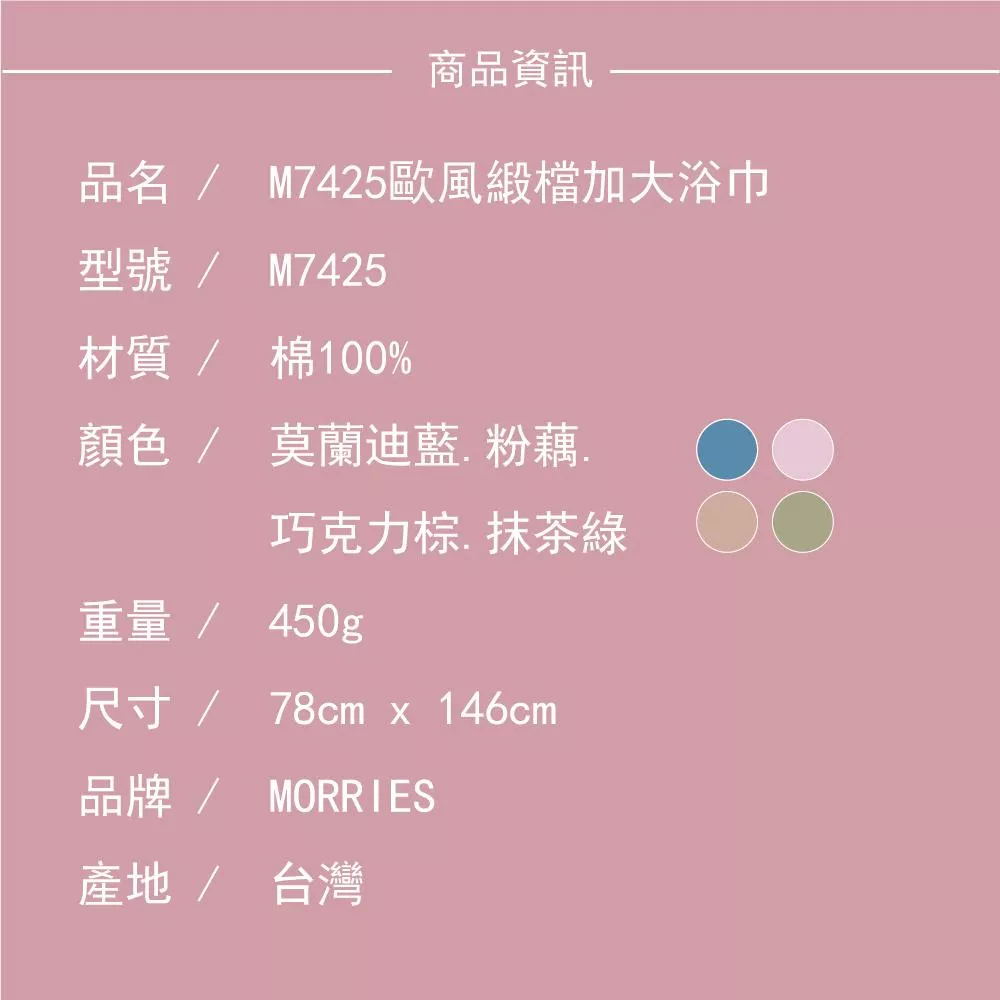 【MORRIES莫利仕】純棉緞條加大加長浴巾M7425