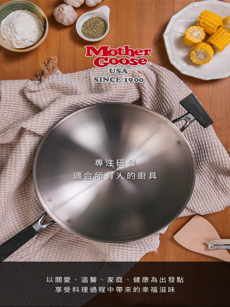 【美國Mother Goose鵝媽媽】鈦鍋 99.94%高純鈦輕量無塗層炒鍋36cm 物理性不沾鍋 鈦鍋 鈦金鍋 鈦炒鍋