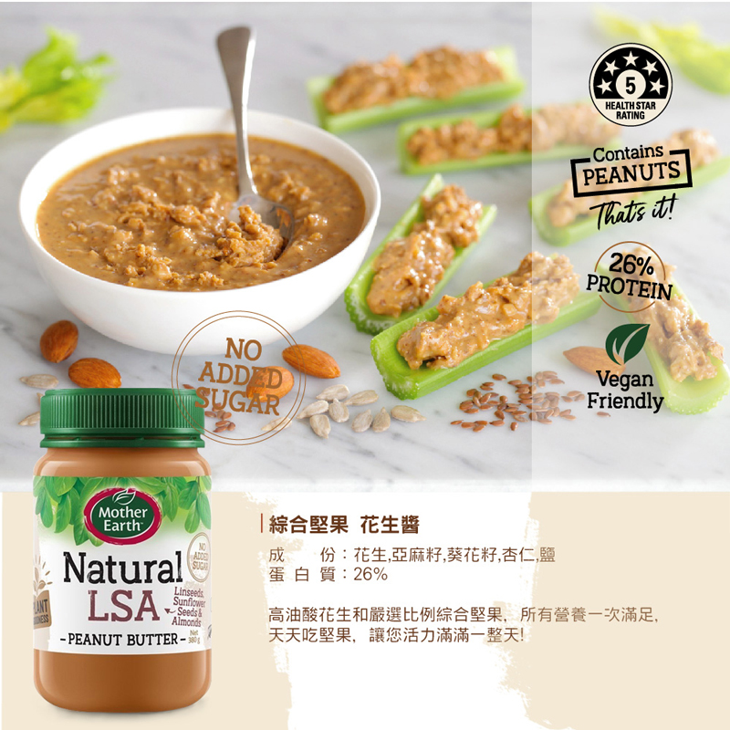 #紐西蘭#堅果醬#亞麻籽#杏仁#抹醬#高油酸#涼拌#全素👉 全新包裝,全新式樣,新鮮上架✔採用紐西蘭高油酸花生,不易變質 不加糖,無多餘熱量,只用些許鹽巴帶出花生的香甜 ~✔紐西蘭生產製造,原裝進口來台,鄉民熱搜最愛花生醬之一 !✔高油酸花生和嚴選比例綜合堅果,所有營養一次滿足,天天吃堅果,讓你活力滿滿一整天!!✔Mother Earth訴求天然,產品皆極簡單純粹,源自「大地母愛」👉綜合堅果花生醬成分:花生,亞麻籽,葵花籽,杏仁,鹽• 內容規格 : 380g/瓶• 保存期限 : 1年• 有效日期 : 如包裝上所示• 原產地(國) : 紐西蘭• 食用方式 : 可塗抹在吐司或依個人喜好食用• 注意事項 : 本產品含有花生, 不適合對其過敏體質者食用 • 保存方式 : 置於陰涼乾燥處, 22度以下避免陽光直射, 開封後請儘早食用, 以免影響風味 ■ 代理廠商名稱 : 好健康國際有限公司■ 代理廠商電話 : 02-26755234■ 代理廠商地址 : 新北市樹林區千歲街57-7號■ 投保產品責任險字號 : 1504字第11PD02948號■ 食品業者登錄字號 : H-153997270-00000-7