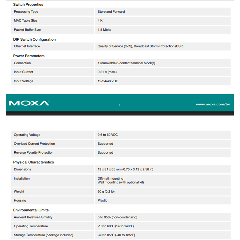 EDS-G2005-ELP系列具有12/24/48 VDC單電源輸入、DIN Rail鋁軌安裝,以及高等級EMI/EMC防護能力。除了小巧的尺寸之外,EDS-G2005-ELP系列也通過100%的高溫測試,確保在部署後能夠穩定運作。EDS-G2005-ELP系列具有-10至60°C的標準操作溫度範圍。