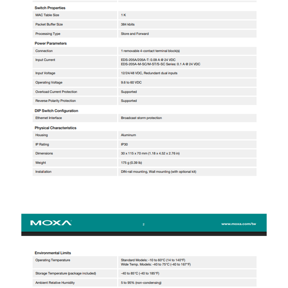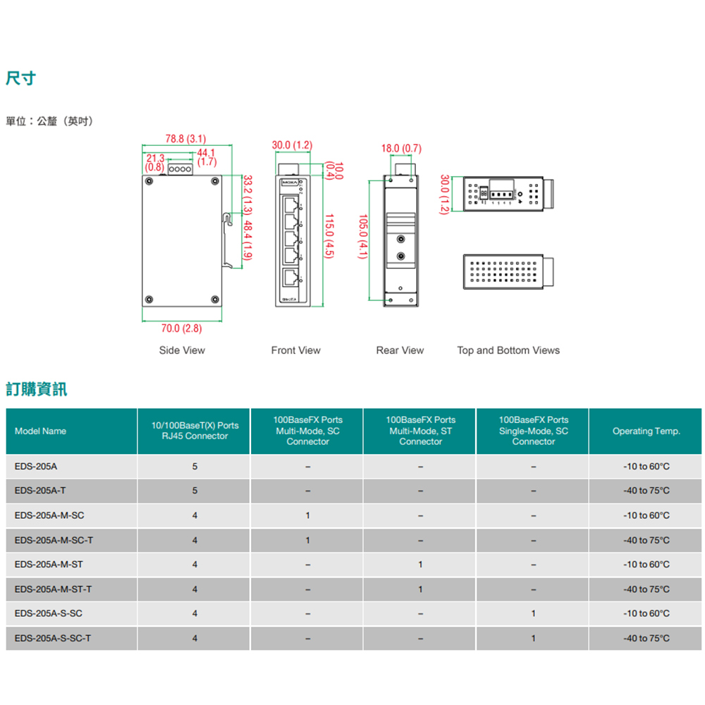 昌運監視器 MOXA EDS-205A 5埠輕巧型非網管型 乙太網路交換器