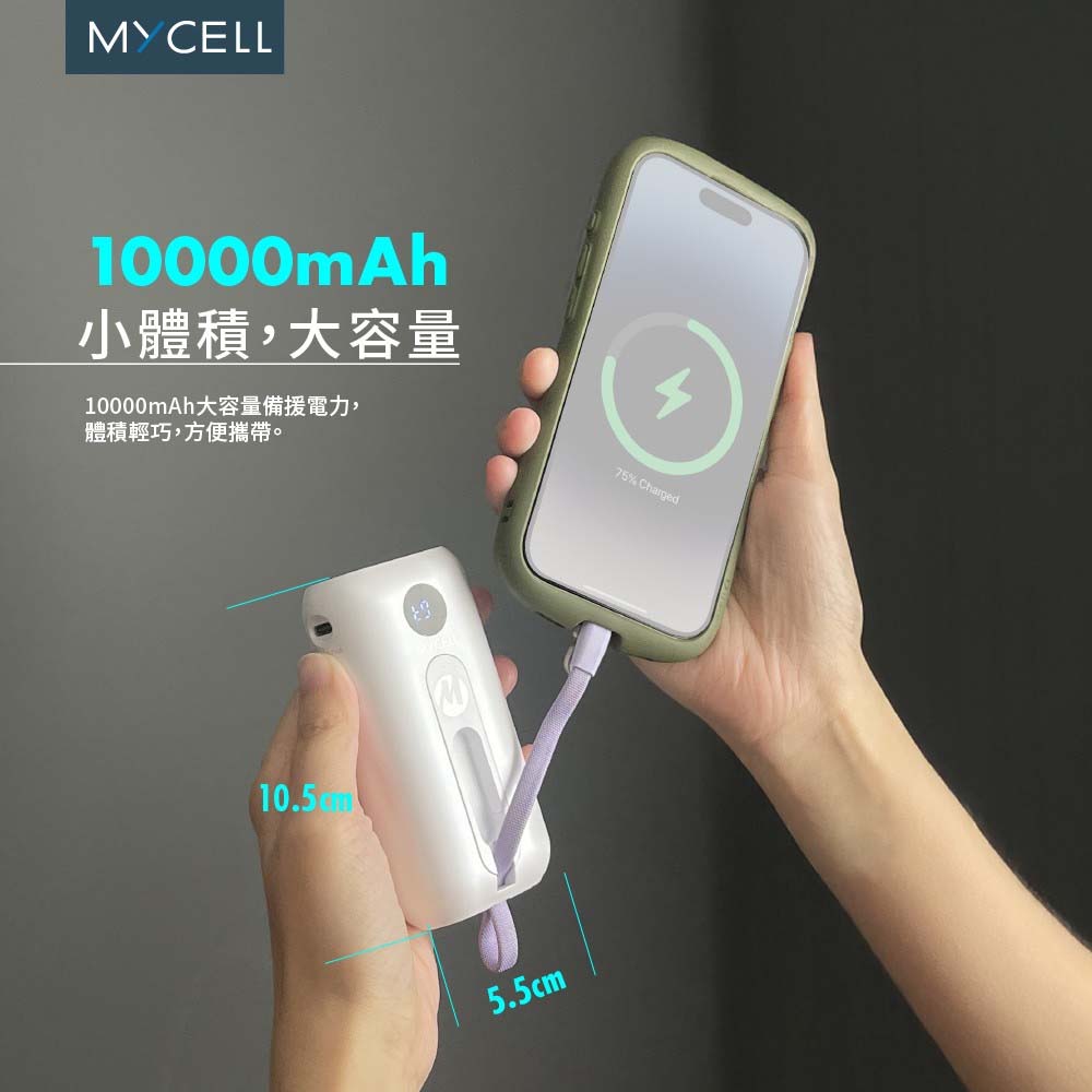 【sansuijibau】PolyBatt Taiwan 10000mAh Magnetic Power Bank with Cable Supports Magnetic Connection, Lightning + Type-C, Black