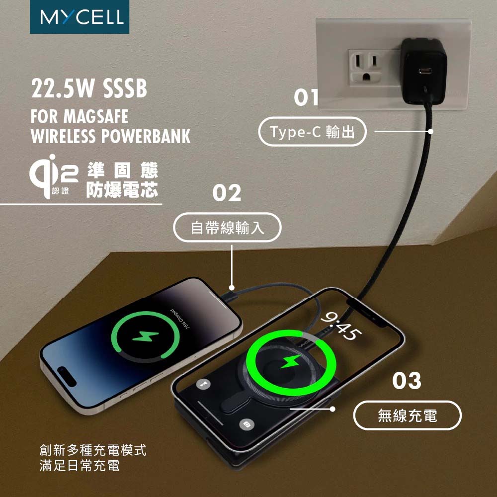 【商品特色】•使用SSSB準固態防暴電芯 使用更安全•Qi2認證 Apple 15W無線充電•Qi2使用溫度更低 更安全•中國3C認證 入境沒問題•支援MagSafe功能 一吸即充•自帶USB-C 充電更自由•編織帶線更牢固更耐用•支援無線15W/帶線 22.5W多種快充模式•多重保護裝置 NTC溫控防火隔層 使用更安心•背面支架設計 追劇更方便