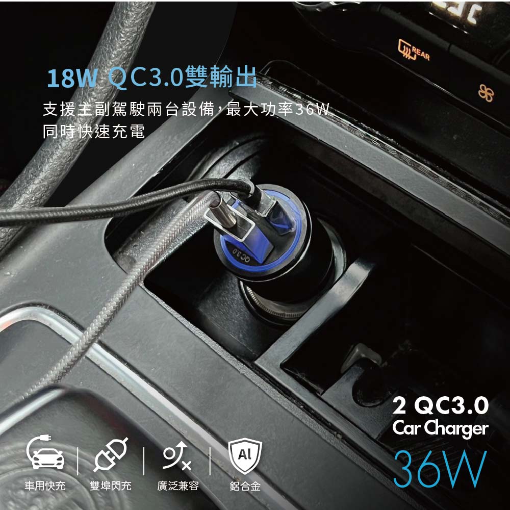 • 適用車型:大多數主流車型【商品規格】•額定輸入 : DC12-24V 3.5A•額定輸出USB-A1 :DC5V 3A/DC9V 2A/DC12V 1.5A•額定輸出USB-A2 :DC5V 3A/DC9V 2A/DC12V 1.5A•額定最大總輸出 : 36W•重量 : 30g•尺寸 : 6.5 x 2.7cm